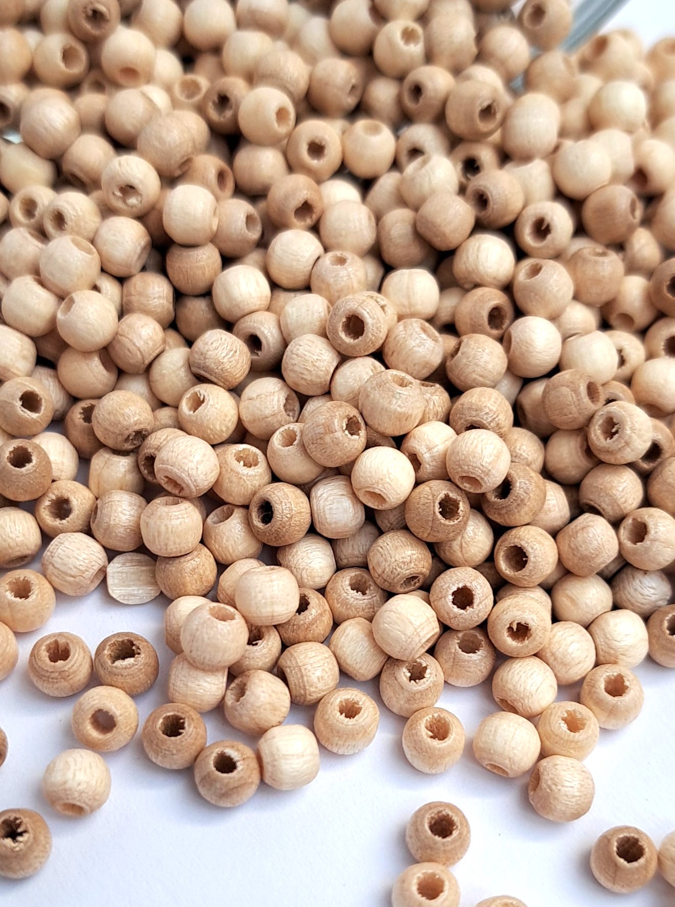 Dřevěné korálky – přírodní lakované, 4 mm (10 ks) Krásné dřevěné korálky v přírodním lakovaném provedení, které zaujmou svým přirozeným původem a precizním zpracováním. I přes přírodní materiál jsou korálky výjimečně jednotné a kvalitní. Průměr: 4 mm Průvlek: ~ 1 mm – vhodný pro širokou paletu návlekových materiálů Materiál: dřevo – lakováno bezpečným lakem určeným na dětské hračky Balení: 10 kusů Původ: Vyrobeno v České republice Ideální pro výrobu přírodních šperků, dětských projektů, dekorací nebo macramé. Přírodní krása a kvalita v jednom!