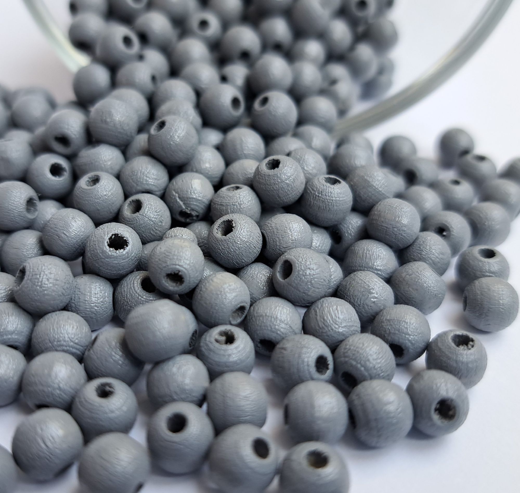 Dřevěné korálky – šedé, 6 mm (10 ks) Krásné dřevěné korálky v šedém provedení, které zaujmou svým přirozeným původem a precizním zpracováním. I přes přírodní materiál jsou korálky výjimečně jednotné a kvalitní. Průměr: 6 mm Průvlek: ~ 1,5 mm – vhodný pro širokou paletu návlekových materiálů Materiál: dřevo – barveno bezpečnými barvami určenými na dětské hračky Balení: 10 kusů Původ: Vyrobeno v České republice Ideální pro výrobu přírodních šperků, dětských projektů, dekorací nebo macramé. Přírodní krása a kvalita v jednom!