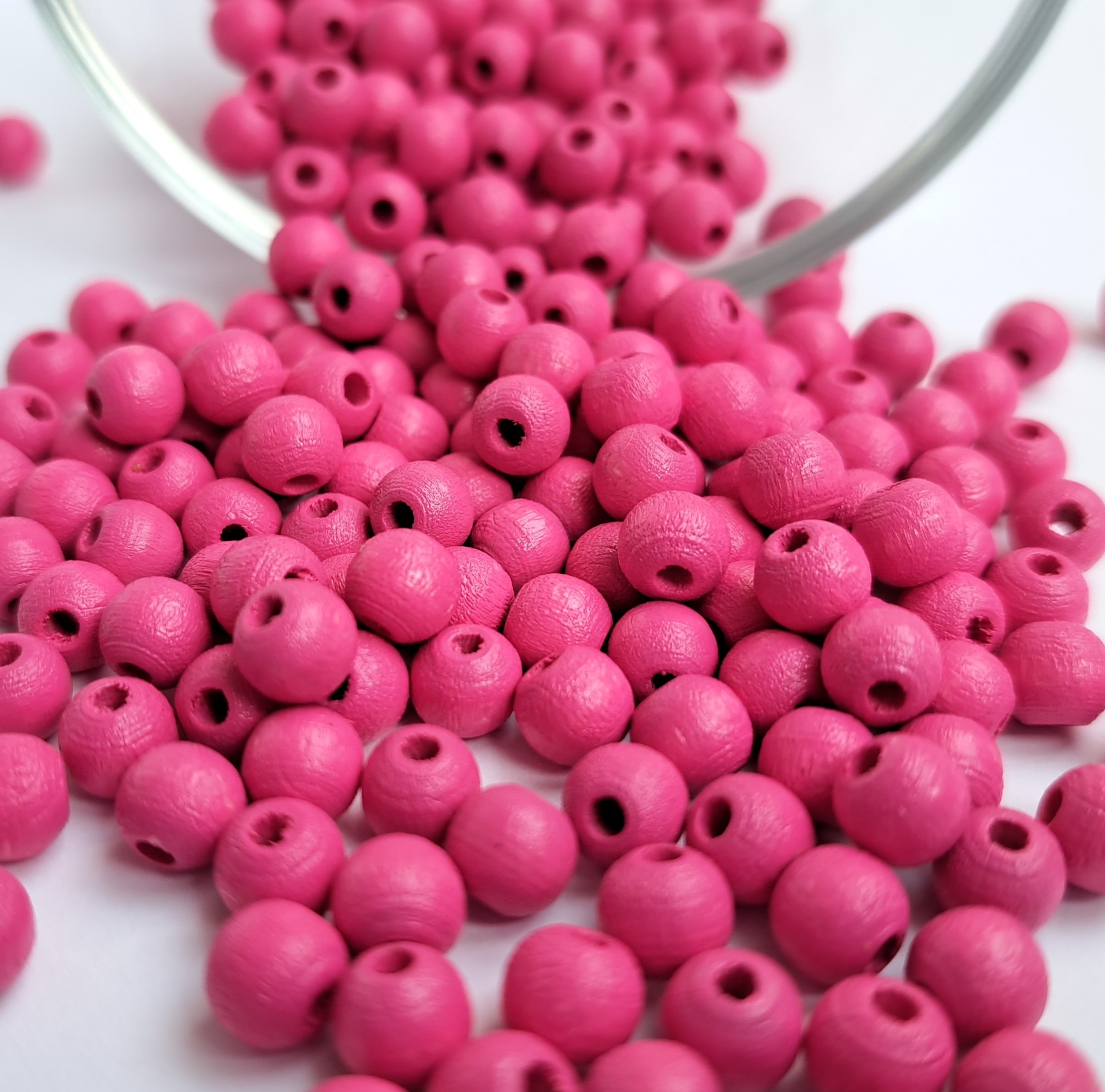 Dřevěné korálky – růžové, 6 mm (10 ks) Krásné dřevěné korálky ve středně růžovém provedení, které zaujmou svým přirozeným původem a precizním zpracováním. I přes přírodní materiál jsou korálky výjimečně jednotné a kvalitní. Průměr: 6 mm Průvlek: ~ 1,5 mm – vhodný pro širokou paletu návlekových materiálů Materiál: dřevo – barveno bezpečnými barvami určenými na dětské hračky Balení: 10 kusů Původ: Vyrobeno v České republice Ideální pro výrobu přírodních šperků, dětských projektů, dekorací nebo macramé. Přírodní krása a kvalita v jednom!