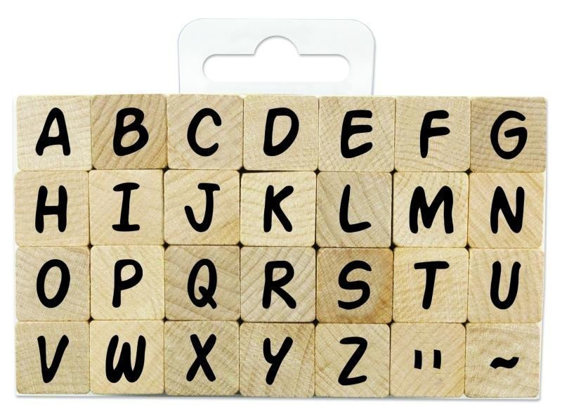 Dřevěná abecední razítka. Výška písmen: 0,85 cm. Hluboká textura razítkovacíh štočku zaručuje dokonalý tisk. Hodí se na výrobu přání, art journalu, vzkazů, obzvláš´t jsou hodná do hmot: keramika, polymery, modelovací hmoty.