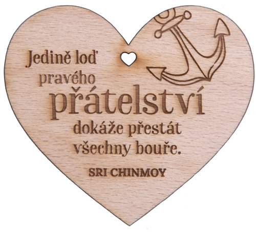 Malé dřevěné srdíčko s dírkou ve tvaru srdce a gravírovaným povzbudivým citátem. Poslouží jako milá drobnost k dárku, ale i jako samostatný dárek.