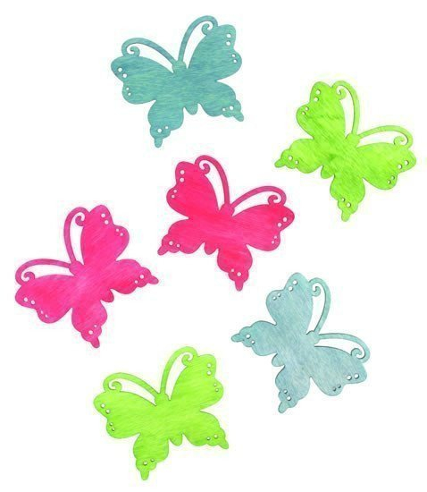 Dřevěné výseky 4cm - motýli zelenomodrý mix 6ks