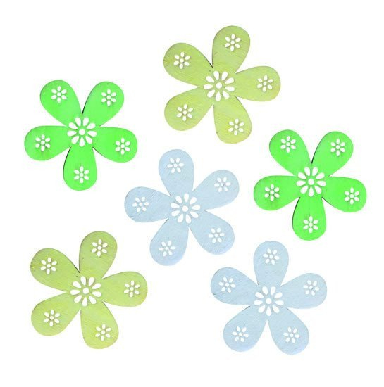 Dřevěné kytičky v jemných odstínech k vytváření dekorací.