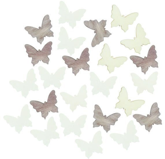 Dřevění motýlci 2cm - hnědobílý mix 24ks