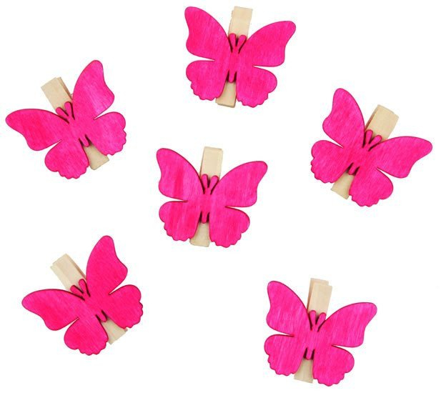 Dřevění motýli 4cm s kolíčkem - růžový mix 6ks