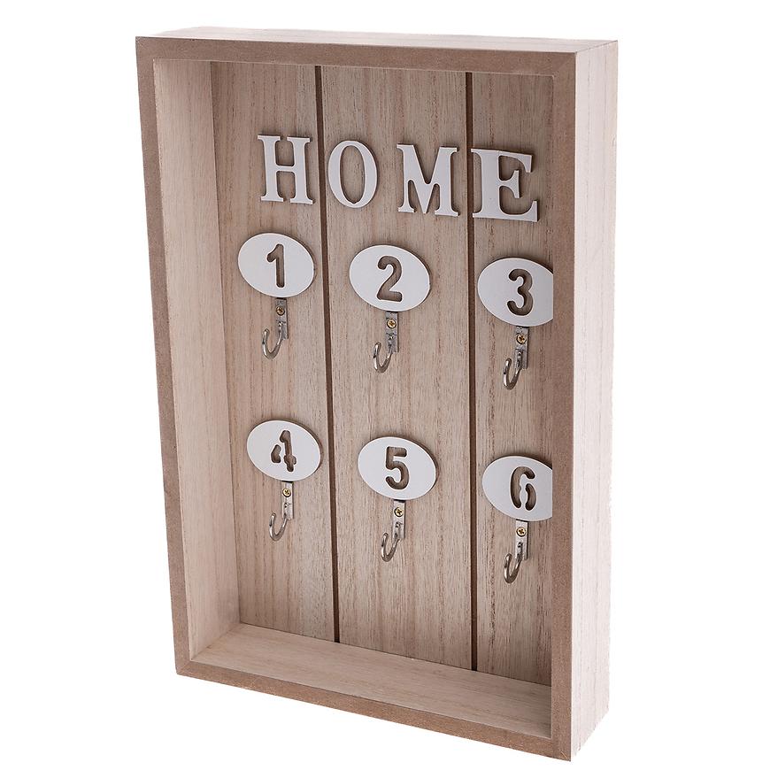 Dřevěný věšák na klíče 6 háčků 20x30x5cm