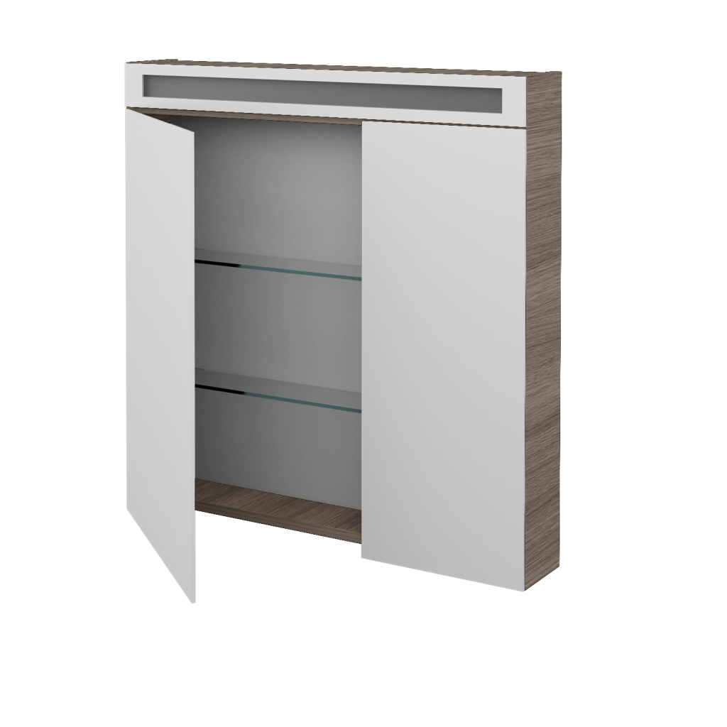 Zrcadlové skříně jsou oblíbené, elegantní a především velmi praktické. V Dřevojasu jsme se při jejich výrobě zaměřili na to, aby vám v zpříjemnily osobní hygienu a celkově zjednodušily život v koupelně. A přesně toto umí galerky řady AIR. Parametry galerky Zrcadlová skříňka AIR GA2NOE 80 je vyrobena ve dvoudveřovém provedení s oboustrannými asymetrickými zrcadly (50/30). Ta jsou ke korpusu připevněna pomocí značkových pantů Grass, které jsou k zrcadlům přichyceny pomocí speciální, patentem chráněné a v Dřevojasu zkonstruované, kovové lišty. Vnitřek galerky Vnitřní uspořádání galerky AIR je řešeno dvěma poličkami vyrobenými z pevného skla. Tyto poličky lze umístit v šesti různých výškově nastavitelných pozicích. LED osvětlení LED osvětlení o výkonu 15,8 W je umístěno v horní části galerky, za zrcadlovou lištou s propískovaným sklem. Světlo se ovládá vypínačem ve spodní části vnitřku galerky, kde je také k dispozici externí i elektrická zásuvka (230 V). Galerka splňuje krytí IP 44. Povrchové úpravy Zrcadlovou skříňku AIR GA2NOE 80 lze vyrobit v celé řadě povrchových úprav. Vybrat si můžete z mnoha dekorů, dřevodekorů laků (provedení lesk/mat) nebo možnost Individual dle vzorníku RAL/NCS. Povrchové úpravy Zrcadlovou skříňku AIR GA2NOE 80 lze vyrobit v celé řadě povrchových úprav. Vybrat si můžete z mnoha dekorů, dřevodekorů laků (provedení lesk/mat) nebo možnost Individual dle vzorníku RAL/NCS. Přednosti galerky: Na galerku se vztahuje naše prodloužená záruka 5 let. Díky svému minimalistickému designu se galerka hodí k jakékoliv umyvadlové skříňce. Materiál korpusu je vyroben z kvalitních LTD desek. Galerka je vybavena úsporným LED osvětlením s výkonem 15,8 W. Oboustranné zrcadlo usazeno na značkových pantech. Dvířka jsou vybavena zrcadlovou lištou chráněnou patentem.