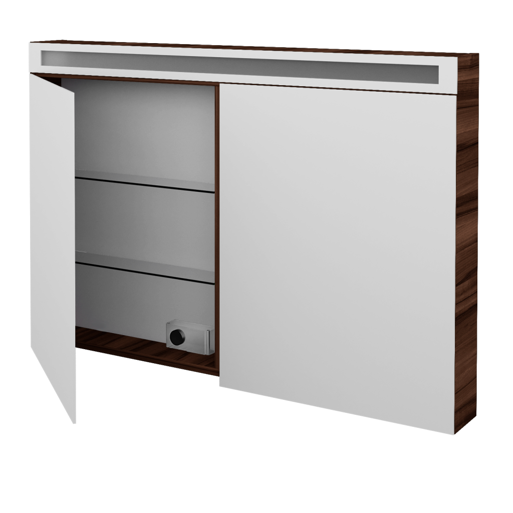 Zrcadlové skříně jsou oblíbené, elegantní a především velmi praktické. V Dřevojasu jsme se při jejich výrobě zaměřili na to, aby vám v zpříjemnily osobní hygienu a celkově zjednodušily život v koupelně. A přesně toto umí galerky řady AIR. Parametry galerky Zrcadlová skříňka AIR GA2OE 120 je vyrobena ve dvoudveřovém provedení s oboustrannými zrcadly. Ta jsou ke korpusu připevněna pomocí značkových pantů Grass, které jsou k zrcadlům přichyceny pomocí speciální, patentem chráněné a v Dřevojasu zkonstruované, kovové lišty. Vnitřek galerky Vnitřní uspořádání galerky AIR je řešeno šesti poličkami vyrobenými z pevného skla. Tyto poličky lze umístit v šesti různých výškově nastavitelných pozicích. LED osvětlení LED osvětlení o výkonu 24,8 W je umístěno v horní části galerky, za zrcadlovou lištou s propískovaným sklem. Světlo se ovládá vypínačem ve spodní části vnitřku galerky, kde je také k dispozici externí i elektrická zásuvka (230 V). Galerka splňuje krytí IP 44. Povrchové úpravy Zrcadlovou skříňku AIR GA2OE 120 lze vyrobit v celé řadě povrchových úprav. Vybrat si můžete z mnoha dekorů, dřevodekorů laků (provedení lesk/mat) nebo možnost Individual dle vzorníku RAL/NCS. Přednosti galerky: Na galerku se vztahuje naše prodloužená záruka 5 let. Díky svému minimalistickému designu se galerka hodí k jakékoliv umyvadlové skříňce. Materiál korpusu je vyroben z kvalitních LTD desek. Galerka je vybavena úsporným LED osvětlením s výkonem 24,8 W. Oboustranné zrcadlo usazeno na značkových pantech. Dvířka jsou vybavena zrcadlovou lištou chráněnou patentem.