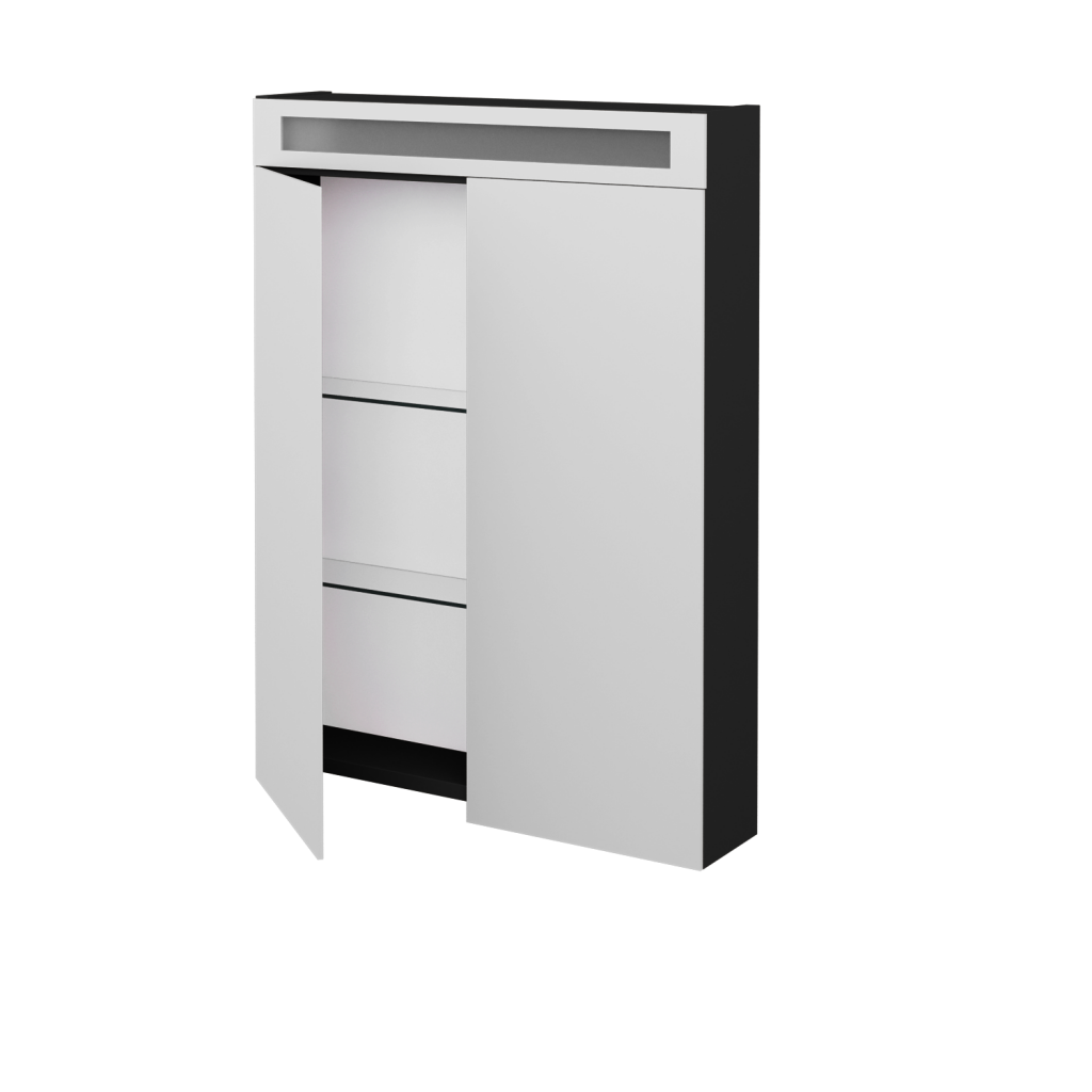 Zrcadlové skříně jsou oblíbené, elegantní a především velmi praktické. V Dřevojasu jsme se při jejich výrobě zaměřili na to, aby vám v zpříjemnily osobní hygienu a celkově zjednodušily život v koupelně. A přesně toto umí galerky řady AIR. Parametry galerky Zrcadlová skříňka AIR GA2OE 60 je vyrobena ve dvoudveřovém provedení s oboustrannými zrcadly. Ta jsou ke korpusu připevněna pomocí značkových pantů Grass, které jsou k zrcadlům přichyceny pomocí speciální, patentem chráněné a v Dřevojasu zkonstruované, kovové lišty. Vnitřek galerky Vnitřní uspořádání galerky AIR je řešeno dvěma poličkami vyrobenými z pevného skla. Tyto poličky lze umístit v šesti různých výškově nastavitelných pozicích. LED osvětlení LED osvětlení o výkonu 11,5 W je umístěno v horní části galerky, za zrcadlovou lištou s propískovaným sklem. Světlo se ovládá vypínačem ve spodní části vnitřku galerky, kde je také k dispozici externí i elektrická zásuvka (230 V). Galerka splňuje krytí IP 44. Povrchové úpravy Zrcadlovou skříňku AIR GA2OE 60 lze vyrobit v celé řadě povrchových úprav. Vybrat si můžete z mnoha dekorů, dřevodekorů laků (provedení lesk/mat) nebo možnost Individual dle vzorníku RAL/NCS. Přednosti galerky: Na galerku se vztahuje naše prodloužená záruka 5 let. Díky svému minimalistickému designu se galerka hodí k jakékoliv umyvadlové skříňce. Materiál korpusu je vyroben z kvalitních LTD desek. Galerka je vybavena úsporným LED osvětlením s výkonem 11,5 W. Oboustranné zrcadlo usazeno na značkových pantech. Dvířka jsou vybavena zrcadlovou lištou chráněnou patentem.