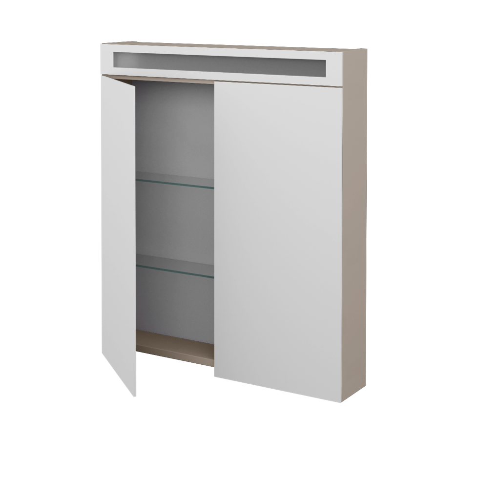 Zrcadlové skříně jsou oblíbené, elegantní a především velmi praktické. V Dřevojasu jsme se při jejich výrobě zaměřili na to, aby vám v zpříjemnily osobní hygienu a celkově zjednodušily život v koupelně. A přesně toto umí galerky řady AIR. Parametry galerky Zrcadlová skříňka AIR GA2OE 70 je vyrobena ve dvoudveřovém provedení s oboustrannými zrcadly. Ta jsou ke korpusu připevněna pomocí značkových pantů Grass, které jsou k zrcadlům přichyceny pomocí speciální, patentem chráněné a v Dřevojasu zkonstruované, kovové lišty. Vnitřek galerky Vnitřní uspořádání galerky AIR je řešeno dvěma poličkami vyrobenými z pevného skla. Tyto poličky lze umístit v šesti různých výškově nastavitelných pozicích. LED osvětlení LED osvětlení o výkonu 13,4 W je umístěno v horní části galerky, za zrcadlovou lištou s propískovaným sklem. Světlo se ovládá vypínačem ve spodní části vnitřku galerky, kde je také k dispozici externí i elektrická zásuvka (230 V). Galerka splňuje krytí IP 44. Přednosti galerky: Na galerku se vztahuje naše prodloužená záruka 5 let. Díky svému minimalistickému designu se galerka hodí k jakékoliv umyvadlové skříňce. Materiál korpusu je vyroben z kvalitních LTD desek. Galerka je vybavena úsporným LED osvětlením s výkonem 13,4 W. Oboustranné zrcadlo usazeno na značkových pantech. Dvířka jsou vybavena zrcadlovou lištou chráněnou patentem.