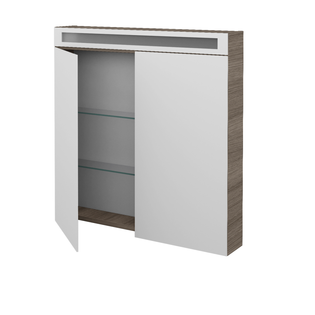 Zrcadlové skříně jsou oblíbené, elegantní a především velmi praktické. V Dřevojasu jsme se při jejich výrobě zaměřili na to, aby vám v zpříjemnily osobní hygienu a celkově zjednodušily život v koupelně. A přesně toto umí galerky řady AIR. Parametry galerky Zrcadlová skříňka AIR GA2OE 80 je vyrobena ve dvoudveřovém provedení s oboustrannými zrcadly. Ta jsou ke korpusu připevněna pomocí značkových pantů Grass, které jsou k zrcadlům přichyceny pomocí speciální, patentem chráněné a v Dřevojasu zkonstruované, kovové lišty. Vnitřek galerky Vnitřní uspořádání galerky AIR je řešeno dvěma poličkami vyrobenými z pevného skla. Tyto poličky lze umístit v šesti různých výškově nastavitelných pozicích. LED osvětlení LED osvětlení o výkonu 15,8 W je umístěno v horní části galerky, za zrcadlovou lištou s propískovaným sklem. Světlo se ovládá vypínačem ve spodní části vnitřku galerky, kde je také k dispozici externí i elektrická zásuvka (230 V). Galerka splňuje krytí IP 44. Povrchové úpravy Zrcadlovou skříňku AIR GA2OE 80 lze vyrobit v celé řadě povrchových úprav. Vybrat si můžete z mnoha dekorů, dřevodekorů laků (provedení lesk/mat) nebo možnost Individual dle vzorníku RAL/NCS. Přednosti galerky: Na galerku se vztahuje naše prodloužená záruka 5 let. Díky svému minimalistickému designu se galerka hodí k jakékoliv umyvadlové skříňce. Materiál korpusu je vyroben z kvalitních LTD desek. Galerka je vybavena úsporným LED osvětlením s výkonem 15,8 W. Oboustranné zrcadlo usazeno na značkových pantech. Dvířka jsou vybavena zrcadlovou lištou chráněnou patentem.