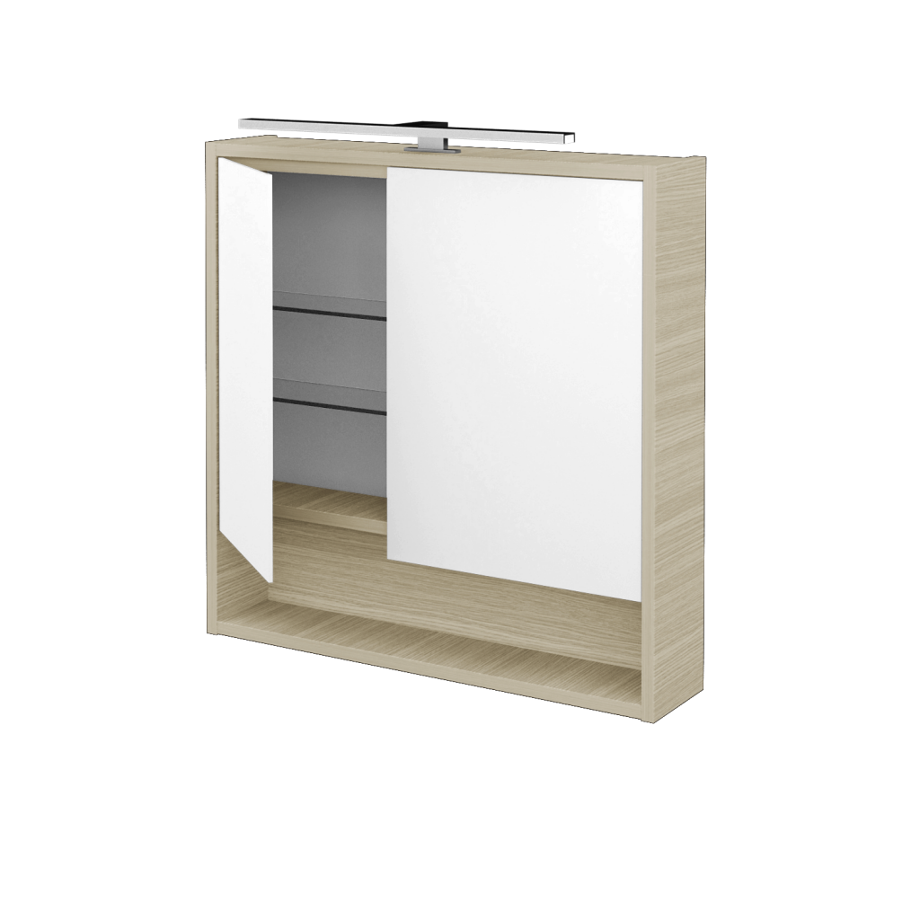 Nová definice prostoru Galerka FOCUS GA2NOE 70 je součástí nové řady galerek FOCUS s ojediněle řešeným úložným prostorem a celou řadou praktických detailů, které vám usnadní život v koupelně. Parametry galerky Galerka FOCUS GA2NOE 70 s asymetrickým dělením zrcadla (30/40) je konstruována jako dvoudveřová s oboustranným zrcadlem. Vnitřní prostor galerky je rozdělen pomocí 2 skleněných a nastavitelných polic, díky čemuž vzniká praktický prostor pro uložení všech doplňků, jako je kosmetika, hygienické potřeby atd. Velkou výhodou galerky je el. zásuvka 230 V (uvnitř galerky) a vypínač pro LED osvětlení PINO 500 (8 W). Galerka splňuje krytí IP 44. Povrchové zpracování Korpus galerky je možné vyrobit v 18 různých dekorech, v lakovaných provedeních (lesk/mat) nebo v individuální barevnosti dle vzorníku RAL/NCS. Výhody galerky: Maximální zrcadlová plocha díky oboustrannému zrcadlu na dvířkách. Galeka je vybavena elektrickou zásuvkou, vypínačem a LED osvětlením Pino 500. Ve spodní části galerky je praktická otevřená nika.