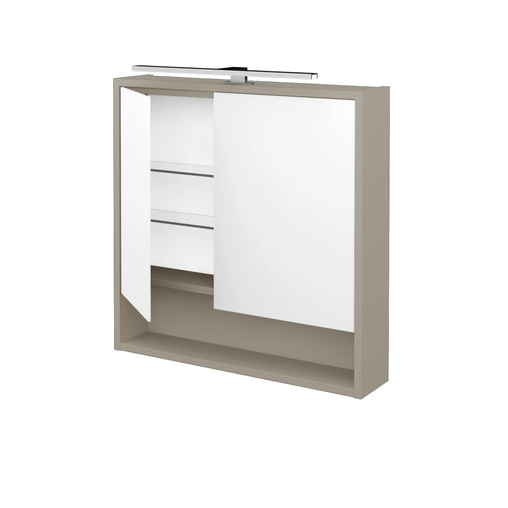 Nová definice prostoru Galerka FOCUS GA2NOE 70 je součástí nové řady galerek FOCUS s ojediněle řešeným úložným prostorem a celou řadou praktických detailů, které vám usnadní život v koupelně. Parametry galerky Galerka FOCUS GA2NOE 70 s asymetrickým dělením zrcadla (30/40) je konstruována jako dvoudveřová s oboustranným zrcadlem. Vnitřní prostor galerky je rozdělen pomocí 2 skleněných a nastavitelných polic, díky čemuž vzniká praktický prostor pro uložení všech doplňků, jako je kosmetika, hygienické potřeby atd. Velkou výhodou galerky je el. zásuvka 230 V (uvnitř galerky) a vypínač pro LED osvětlení PINO 500 (8 W). Galerka splňuje krytí IP 44. Povrchové zpracování Korpus galerky je možné vyrobit v 18 různých dekorech, v lakovaných provedeních (lesk/mat) nebo v individuální barevnosti dle vzorníku RAL/NCS. Výhody galerky: Maximální zrcadlová plocha díky oboustrannému zrcadlu na dvířkách. Galeka je vybavena elektrickou zásuvkou, vypínačem a LED osvětlením Pino 500. Ve spodní části galerky je praktická otevřená nika.