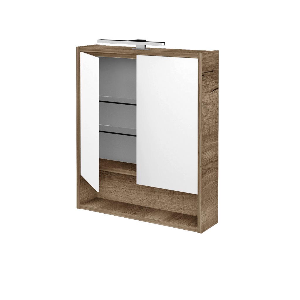 Nová definice prostoru Galerka FOCUS GA2OE 60 je součástí nové řady galerek FOCUS s ojediněle řešeným úložným prostorem a celou řadou praktických detailů, které vám usnadní život v koupelně.  Parametry galerky Galerka FOCUS GA2OE 60 je konstruována jako dvoudveřová s oboustranným zrcadlem. Vnitřní prostor galerky je rozdělen pomocí 2 skleněných a nastavitelných polic, díky čemuž vzniká praktický prostor pro uložení všech doplňků, jako je kosmetika, hygienické potřeby atd. Velkou výhodou galerky je el. zásuvka 230 V (uvnitř galerky) a vypínač pro LED osvětlení Pino 300 (5 W, teplota 4 000 K). Galerka splňuje krytí IP 44. Povrchové zpracování Korpus galerky je možné vyrobit v 18 různých dekorech, v lakovaných provedeních (lesk/mat) nebo v individuální barevnosti dle vzorníku RAL/NCS. Výhody galerky: Maximální zrcadlová plocha díky oboustrannému zrcadlu na dvířkách. Galeka je vybavena elektrickou zásuvkou, vypínačem a LED osvětlením Pino 300. Ve spodní části galerky je praktická otevřená nika.