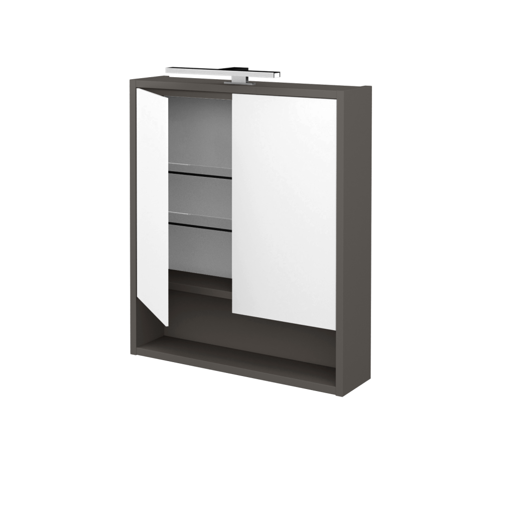 Nová definice prostoru Galerka FOCUS GA2OE 60 je součástí nové řady galerek FOCUS s ojediněle řešeným úložným prostorem a celou řadou praktických detailů, které vám usnadní život v koupelně. Parametry galerky Galerka FOCUS GA2OE 60 je konstruována jako dvoudveřová s oboustranným zrcadlem. Vnitřní prostor galerky je rozdělen pomocí 2 skleněných a nastavitelných polic, díky čemuž vzniká praktický prostor pro uložení všech doplňků, jako je kosmetika, hygienické potřeby atd. Velkou výhodou galerky je el. zásuvka 230 V (uvnitř galerky) a vypínač pro LED osvětlení Pino 300 (5 W, teplota 4 000 K). Galerka splňuje krytí IP 44. Povrchové zpracování Korpus galerky je možné vyrobit v 18 různých dekorech, v lakovaných provedeních (lesk/mat) nebo v individuální barevnosti dle vzorníku RAL/NCS. Výhody galerky: Maximální zrcadlová plocha díky oboustrannému zrcadlu na dvířkách. Galeka je vybavena elektrickou zásuvkou, vypínačem a LED osvětlením Pino 300. Ve spodní části galerky je praktická otevřená nika.