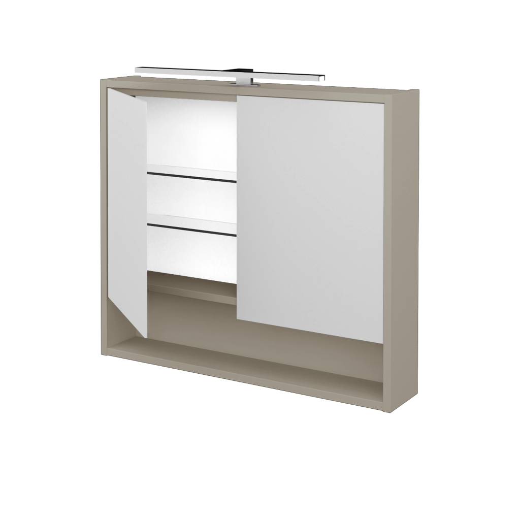 Nová definice prostoru Galerka FOCUS GA2OE 80 je součástí nové řady galerek FOCUS s ojediněle řešeným úložným prostorem a celou řadou praktických detailů, které vám usnadní život v koupelně. Parametry galerky Galerka FOCUS GA2OE 80 je konstruována jako dvoudveřová s oboustranným zrcadlem. Vnitřní prostor galerky je rozdělen pomocí 2 skleněných a nastavitelných polic, díky čemuž vzniká praktický prostor pro uložení všech doplňků, jako je kosmetika, hygienické potřeby atd. Velkou výhodou galerky je el. zásuvka 230 V (uvnitř galerky) a vypínač pro LED osvětlení Pino 500 (8 W, teplota 4 000 K). Galerka splňuje krytí IP 44. Povrchové zpracování Korpus galerky je možné vyrobit v 18 různých dekorech, v lakovaných provedeních (lesk/mat) nebo v individuální barevnosti dle vzorníku RAL/NCS. Výhody galerky: Maximální zrcadlová plocha díky oboustrannému zrcadlu na dvířkách. Galeka je vybavena elektrickou zásuvkou, vypínačem a LED osvětlením Pino 500. Ve spodní části galerky je praktická otevřená nika.