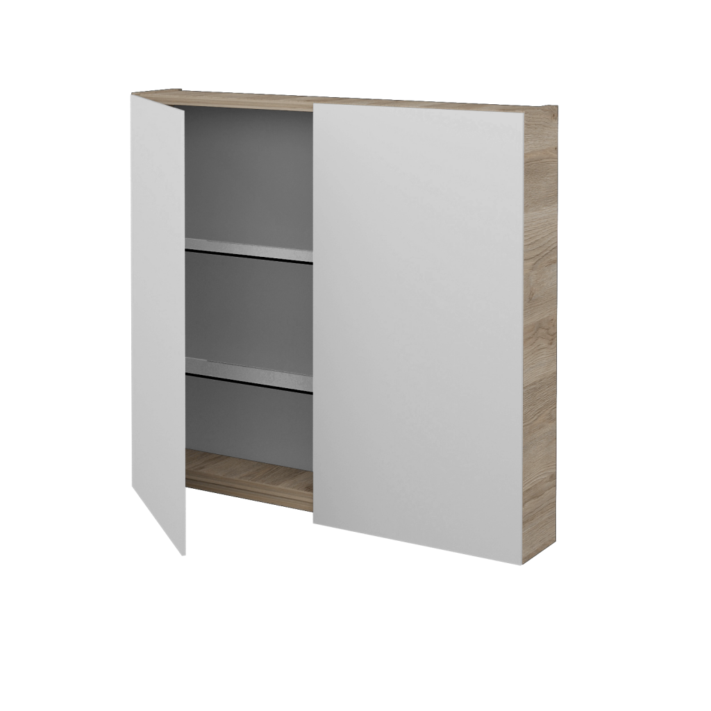 Galerka PREMIUM GA2E 80 představuje důmyslnou kombinaci zrcadlové plochy a úložného prostoru, do kterého bez problémů uložíte parfémy, hygienické potřeby a jiné drobné předměty. Praktické využití najde skříň především menších nebo středně velkých koupelnách. Parametry galerky Galerka PREMIUM GA2E 80 je navržena jako dvoudveřová s oboustrannými zrcadly. Ta jsou ke korpusu připevněna pomocí značkových pantů s tlumeným dovíráním, usazených na speciální liště, vyvinuté přímo v Dřevojasu. Barevná provedení Korpus galerky je vyroben z kvalitních LTD desek, které je možné upravit v celé řadě dekorů, dřevodekorů nebo lakovaných provedeních (lesk/mat). K dispozici je také úprava Individual dle vzorníku RAL/NCS. Vnitřní prostor Vnitřek galerky je rozdělen pomocí 2 polic z pevného skla, které lze libovolně nastavit do několika výškových poloh. Příslušenství Součástí galerky je elektrická zásuvka (230 V) s krytím IP 44, umístěna zvenčí ve spodní části galerky. Možnost přídavného osvětlení Galerku vyrábíme bez LED osvětlení. Můžete si ho ale dodatečně objednat některé z naší nabídky. Ke galerce PREMIUM doporučujeme světla FIDO, TONY nebo RENO. Přednosti galerky: zrcadlová skříň díky oboustranným zrcadlům poskytuje velkou zrcadlovou plochu. vnitřní prostor je velkorysý a uložíte v něm vše potřebné. dvířka galerky mají tlumené dovírání.