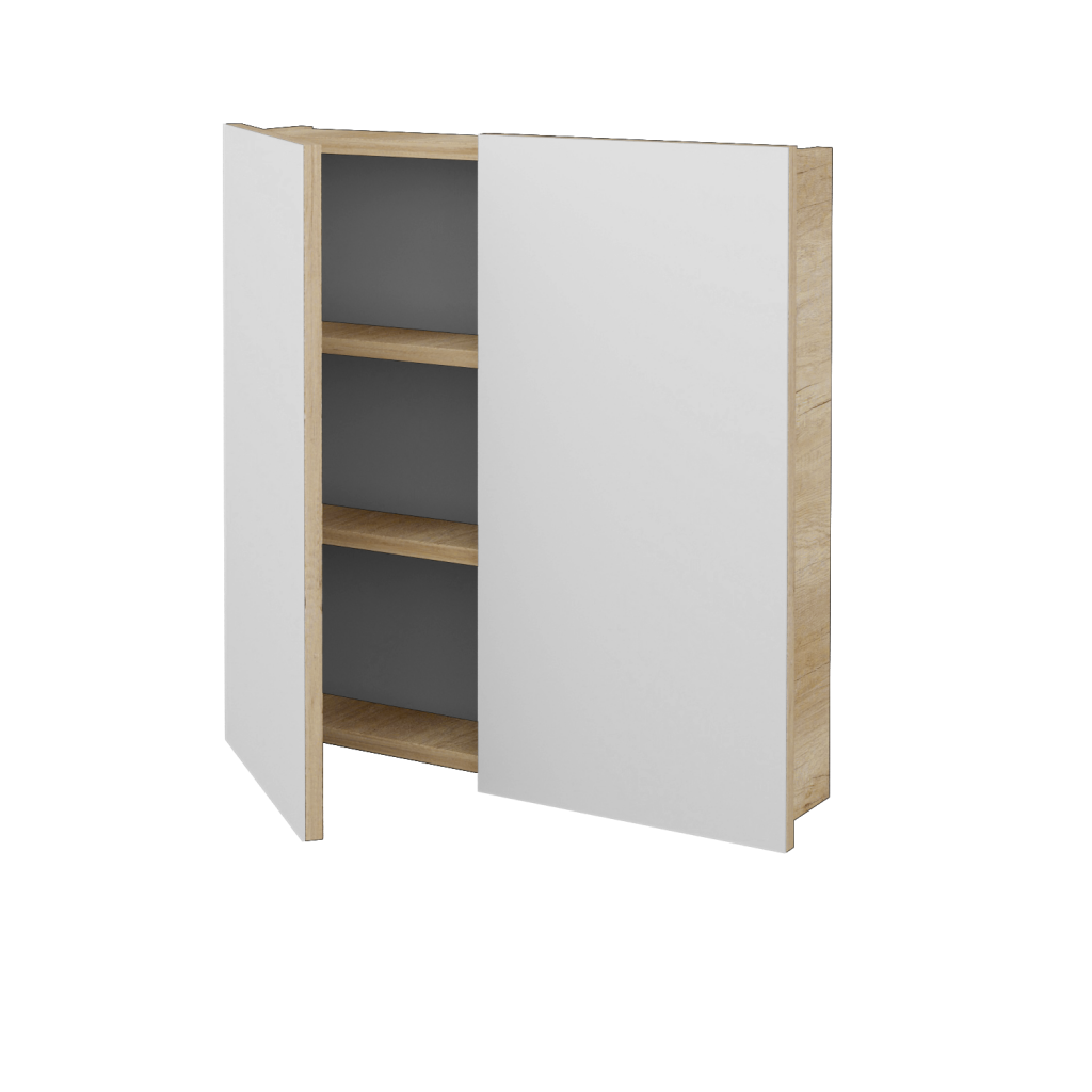 Jednoduchá, prostorná a přeci praktická. Taková je galerka Q GA2 70, jejíž kvality a úložný prostor oceníte zejména v menších, ale i středně velkých koupelnách.  Parametry galerky Koupelnová galerka Q GA2 70 je konstruována jako dvoudveřová. Vnitřní prostor galerky je členěn 2 dřevěnými a nastavitelnými policemi. Dvířka galerky s nalepeným zrcadlem jsou vyrobeny z kvalitních LTD desek a otevírají se za přesah. Ten činí v horní a spodní části cca 2 cm. Při plánování koupelny pamatujte, že po otevření nabývá galerka větších rozměrů, protože dochází k přesahu korpusu dvířky. Možnost doobjednat LED osvětlení Galerku dodáváme bez osvětlení. Pokud máte ale v koupelně málo světla, můžete si ke galerce přiobjednat některé z našich LED světel. Ke Q galerce jsou k dispozici: LED osvětlení řady PINO LED osvětlení řady FIDO LED osvětlení RENO Černá LED osvětlení NERO, TEZO, MOLY a KALA Povrchová úprava Galerku vyrábíme v celé řadě dekorů, dřevodekorů nebo laků. Pokud máte svojí oblíbenou barvu, můžete využít i výrobu Individual dle vzorníku RAL/NCS.  Přednosti galerky Zrcadlová skříň je velmi praktická a vhodná do středně velkých koupelen. Vnitřní police jsou volně nastavitelné. Výběr z celé řady povrchových úprav, včetně možnosti Individual. Možnost přiobjednat ke galerce LED osvětlení.