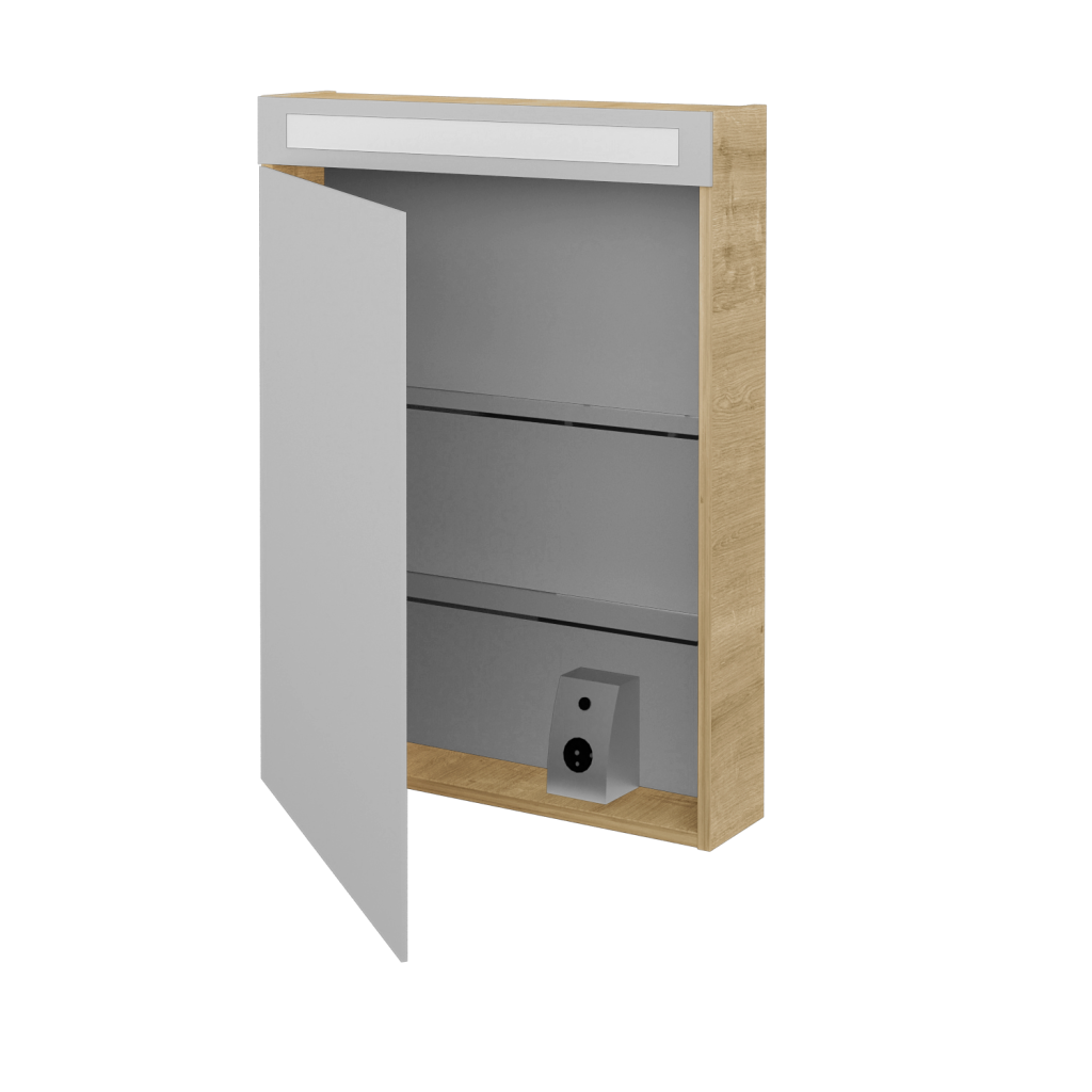 Zrcadlové skříně jsou oblíbené, elegantní a především velmi praktické. V Dřevojasu jsme se při jejich výrobě zaměřili na to, aby vám v zpříjemnily osobní hygienu a celkově zjednodušily život v koupelně. A přesně toto umí galerky řady AIR. Parametry galerky Zrcadlová skříňka AIR GAOE 60 je vyrobena v jednodveřovém provedení s oboustranným zrcadlem, u kterého si můžete zvolit, zda chcete pravo nebo levostranné otevírání. Zrcadlo je ke korpusu připevněno pomocí značkových pantů Grass. Jejich přichycení k zrcadlovině je možné díky patentem chráněné a v Dřevojasu zkonstruované liště. Vnitřek galerky Vnitřní uspořádání galerky AIR je řešeno dvěma poličkami vyrobenými z pevného skla. Tyto poličky lze umístit v šesti různých výškově nastavitelných pozicích. LED osvětlení LED osvětlení o výkonu 11,5 W je umístěno v horní části galerky, za zrcadlovou lištou s propískovaným sklem. Světlo se ovládá vypínačem ve spodní části vnitřku galerky, kde je také k dispozici externí i elektrická zásuvka (230 V). Galerka splňuje krytí IP 44. Povrchové úpravy Zrcadlovou skříňku AIR GA2OE 60 lze vyrobit v celé řadě povrchových úprav. Vybrat si můžete z mnoha dekorů, dřevodekorů laků (provedení lesk/mat) nebo možnost Individual dle vzorníku RAL/NCS. Přednosti galerky: Na galerku se vztahuje naše prodloužená záruka 5 let. Díky svému minimalistickému designu se galerka hodí k jakékoliv umyvadlové skříňce. Materiál korpusu je vyroben z kvalitních LTD desek. Galerka je vybavena úsporným LED osvětlením s výkonem 11,5 W. Oboustranné zrcadlo usazeno na značkových pantech. Dvířka jsou vybavena zrcadlovou lištou chráněnou patentem.
