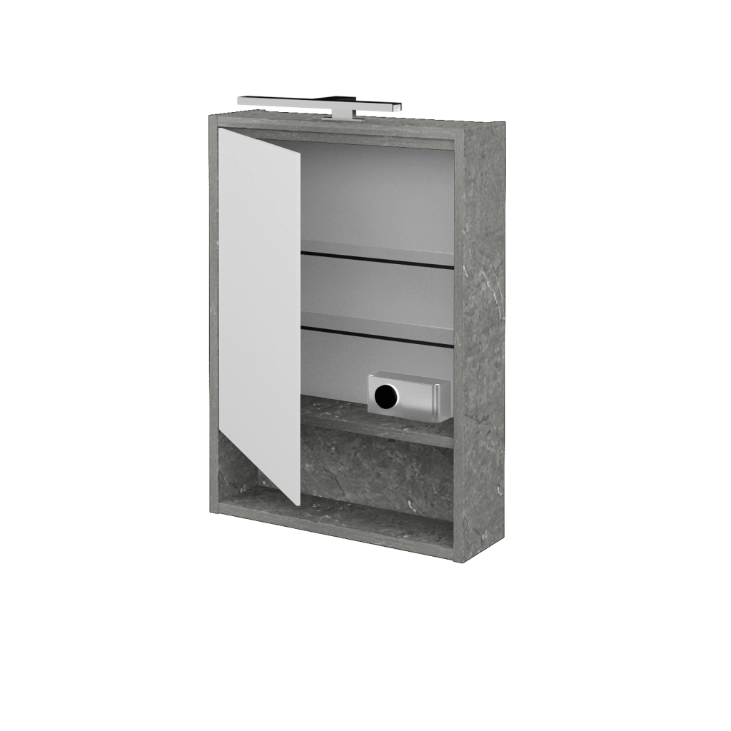 Nová definice prostoru Galerka FOCUS GAOE 50 je součástí nové řady galerek FOCUS s ojediněle řešeným úložným prostorem a celou řadou praktických detailů, které vám usnadní život v koupelně. Parametry Galerka FOCUS GAOE 50 je konstruována jako jednodveřová s oboustranným zrcadlem. Vnitřní prostor galerky je rozdělen pomocí 2 skleněných a nastavitelných polic, díky čemuž vzniká praktický prostor pro uložení všech doplňků, jako je kosmetika, hygienické potřeby atd. Velkou výhodou galerky je el. zásuvka 230 V (uvnitř galerky) a vypínač pro LED osvětlení Pino 300 (5 W, teplota 4 000 K). Galerka splňuje krytí IP 44. U galerky je rovněž možné vybrat, zda chcete pravé nebo levé otevírání. Povrchové zpracování Korpus galerky je možné vyrobit v 18 různých dekorech, v lakovaných provedeních (lesk/mat) nebo v individuální barevnosti dle vzorníku RAL/NCS. Výhody galerky: Možnost volby pravého nebo levého otevírání. Maximální zrcadlová plocha díky oboustrannému zrcadlu na dvířkách. Galeka je vybavena elektrickou zásuvkou, vypínačem a LED osvětlením Pino 300. Ve spodní části galerky je praktická otevřená nika.
