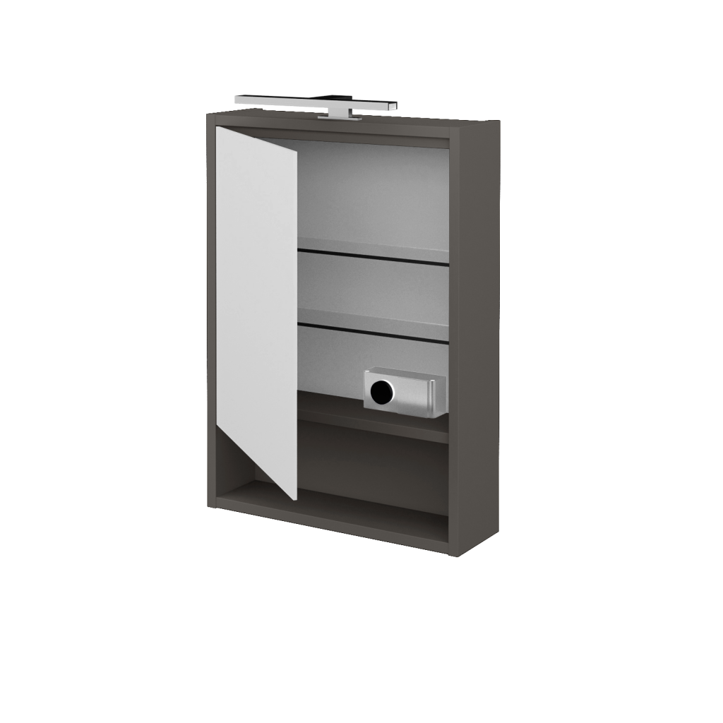 Nová definice prostoru Galerka FOCUS GAOE 50 je součástí nové řady galerek FOCUS s ojediněle řešeným úložným prostorem a celou řadou praktických detailů, které vám usnadní život v koupelně. Parametry Galerka FOCUS GAOE 50 je konstruována jako jednodveřová s oboustranným zrcadlem. Vnitřní prostor galerky je rozdělen pomocí 2 skleněných a nastavitelných polic, díky čemuž vzniká praktický prostor pro uložení všech doplňků, jako je kosmetika, hygienické potřeby atd. Velkou výhodou galerky je el. zásuvka 230 V (uvnitř galerky) a vypínač pro LED osvětlení Pino 300 (5 W, teplota 4 000 K). Galerka splňuje krytí IP 44. U galerky je rovněž možné vybrat, zda chcete pravé nebo levé otevírání. Povrchové zpracování Korpus galerky je možné vyrobit v 18 různých dekorech, v lakovaných provedeních (lesk/mat) nebo v individuální barevnosti dle vzorníku RAL/NCS. Výhody galerky: Možnost volby pravého nebo levého otevírání. Maximální zrcadlová plocha díky oboustrannému zrcadlu na dvířkách. Galeka je vybavena elektrickou zásuvkou, vypínačem a LED osvětlením Pino 300. Ve spodní části galerky je praktická otevřená nika.