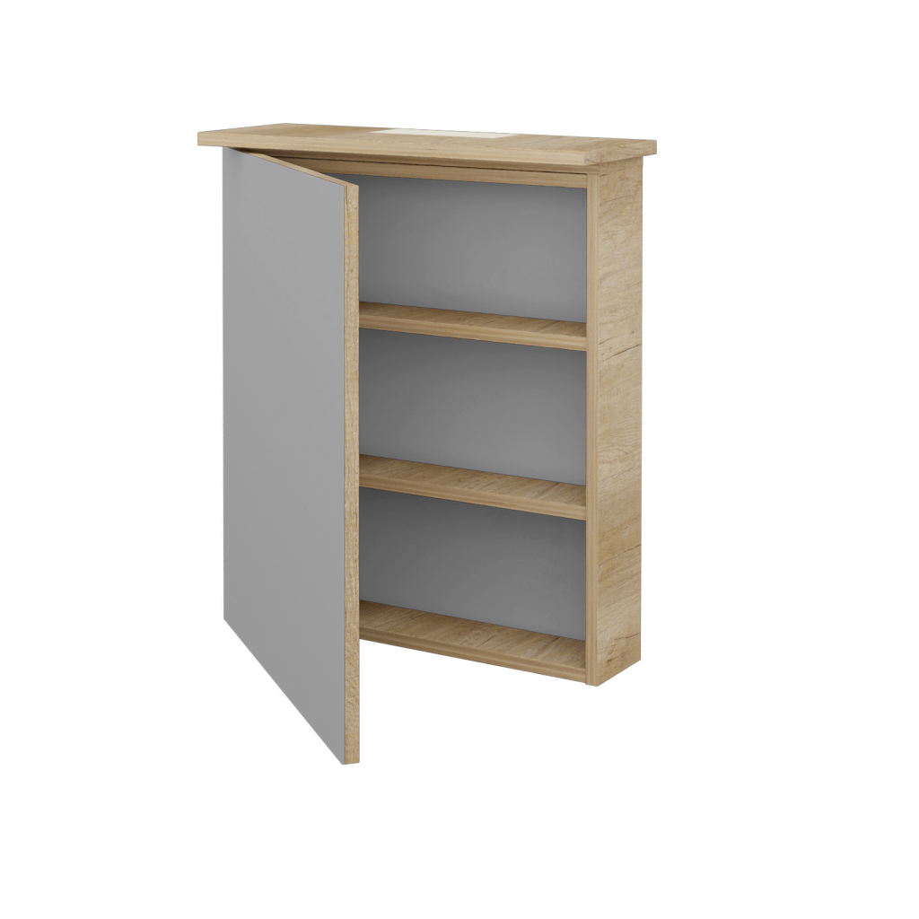 Hledáte jednoduchou, ale praktickou galerku, která by byla současně vhodným designovým doplňkem ve vaší koupelně? Pak jste ji našli. Zrcadlová skříňka řady SANI přinese do koupelny svěží nádech, zaručí dostatek zrcadlové plochy, světla a také úložného prostoru. Komfort se vším všudy.   Parametry galerky Galerka SANI GAO 60 je konstruována v jednodveřovém provedení s otevíráním dvířek přes korpus. Dvířka jsou usazena značkovém kování a ať už jste levák či pravák, můžete si vybrat, na jaké straně je chcete mít. Vnitřek galerky je členěn pomocí dvou dřevěných nastavitelných polic. Korpus galerky a dvířka, na nichž jsou nalepena zrcadla, jsou vyrobena z kvalitních LTD desek.  Osvětlení Galerka je vybavena praktickým LED osvětlením (7,5 W), které je usazené v horní části galerky, na předstupující rampě. Splňuje krytí IP44. Barevné provedení Korpus galerky vyrábíme v celé řadě dekorů, dřevodekorů, laků a také v individuálním provedení dle vzorníku RAL/NCS. Přednosti galerky: Na galerku se vztahuje prodloužená záruka 5 let. Zrcadlová skříňka vyniká jednoduchým, ale elegantním designem. Díky svým rozměrům se hodí především do menších koupelen. Zrcadlovou skříňku lze kombinovat s kteroukoliv umyvadlovou skříňkou z naší nabídky.