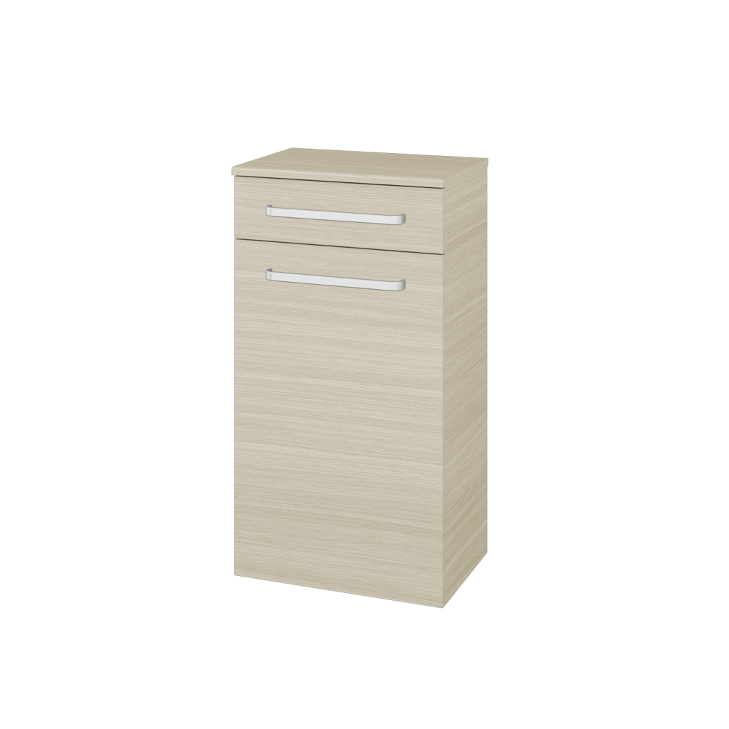 Problém s úložným prostorem v menších a středních koupelnách pomůže vyřešit naše doplňková skříň DOS SNDZ 50. Parametry skříně Skříň DOS SNDKZ 50 je konstruována jako závěsná, s objemným prostorem a dvířky ve spodní části, u kterých si můžete vybrat, zda chcete levé nebo pravé otevírání. V horní části se nachází praktická zásuvka. Dvířka i zásuvka jsou uloženy na kování značky značky Hettich s jemným a tichým dovíráním a celoživotní zárukou kvality. K této skříni není možné doobjednat prádelní koš. Dvířka a zásuvku lze otevírat pomocí několika typů úchytek: T01 - matná oblá úchytka T02 - ocelová kulatá úchytka T03 - chromová hranatá úchytka T04 - chromová úchytka s lesklým povrchem T05 - chromová uchytka s lesklým povrchem Povrchové úpravy Skříň vyrábíme v celé řadě dekorů, dřevodekorů a laků v provedení lesk/mat. Samozřejmostí je také úprava v provedení Individual dle vzorníku RAL/NCS. Sladění s ostatními skříněmi ve vaší koupelně nebylo nikdy jednodušší. Přednosti skříňky: kování značky Hettich dodáváme s celoživotní zárukou. skříň je konstruována pro zavěšení vedle koupelnové skříně nebo pračky.