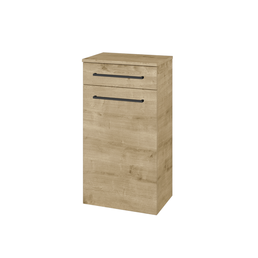 Problém s úložným prostorem v menších a středních koupelnách pomůže vyřešit naše doplňková skříň DOS SNDZ 50. Parametry skříně Skříň DOS SNDKZ 50 je konstruována jako závěsná, s objemným prostorem a dvířky ve spodní části, u kterých si můžete vybrat, zda chcete levé nebo pravé otevírání. V horní části se nachází praktická zásuvka. Dvířka i zásuvka jsou uloženy na kování značky značky Hettich s jemným a tichým dovíráním a celoživotní zárukou kvality. K této skříni není možné doobjednat prádelní koš. Dvířka a zásuvku lze otevírat pomocí několika typů úchytek: T01 - matná oblá úchytka T02 - ocelová kulatá úchytka T03 - chromová hranatá úchytka T04 - chromová úchytka s lesklým povrchem T05 - chromová uchytka s lesklým povrchem Povrchové úpravy Skříň vyrábíme v celé řadě dekorů, dřevodekorů a laků v provedení lesk/mat. Samozřejmostí je také úprava v provedení Individual dle vzorníku RAL/NCS. Sladění s ostatními skříněmi ve vaší koupelně nebylo nikdy jednodušší. Přednosti skříňky: kování značky Hettich dodáváme s celoživotní zárukou. skříň je konstruována pro zavěšení vedle koupelnové skříně nebo pračky.