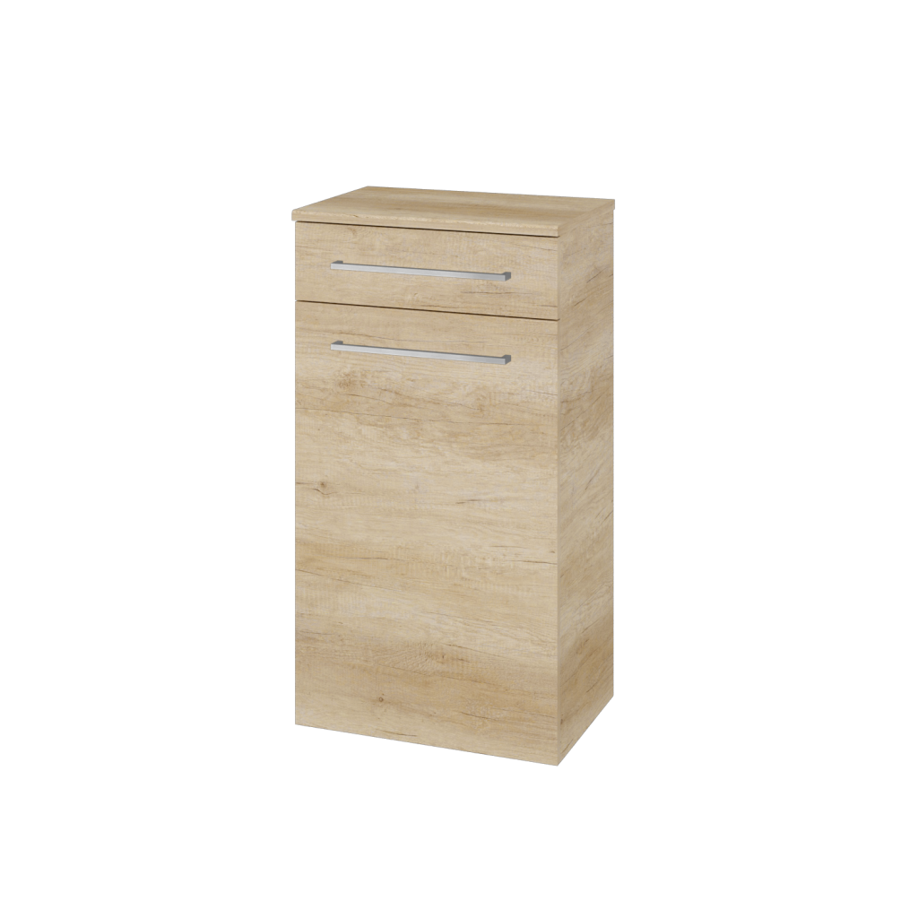 Problém s úložným prostorem v menších a středních koupelnách pomůže vyřešit naše doplňková skříň DOS SNDZ 50. Parametry skříně Skříň DOS SNDKZ 50 je konstruována jako závěsná, s objemným prostorem a dvířky ve spodní části, u kterých si můžete vybrat, zda chcete levé nebo pravé otevírání. V horní části se nachází praktická zásuvka. Dvířka i zásuvka jsou uloženy na kování značky značky Hettich s jemným a tichým dovíráním a celoživotní zárukou kvality. K této skříni není možné doobjednat prádelní koš. Dvířka a zásuvku lze otevírat pomocí několika typů úchytek: T01 - matná oblá úchytka T02 - ocelová kulatá úchytka T03 - chromová hranatá úchytka T04 - chromová úchytka s lesklým povrchem T05 - chromová uchytka s lesklým povrchem Povrchové úpravy Skříň vyrábíme v celé řadě dekorů, dřevodekorů a laků v provedení lesk/mat. Samozřejmostí je také úprava v provedení Individual dle vzorníku RAL/NCS. Sladění s ostatními skříněmi ve vaší koupelně nebylo nikdy jednodušší. Přednosti skříňky: kování značky Hettich dodáváme s celoživotní zárukou. skříň je konstruována pro zavěšení vedle koupelnové skříně nebo pračky.