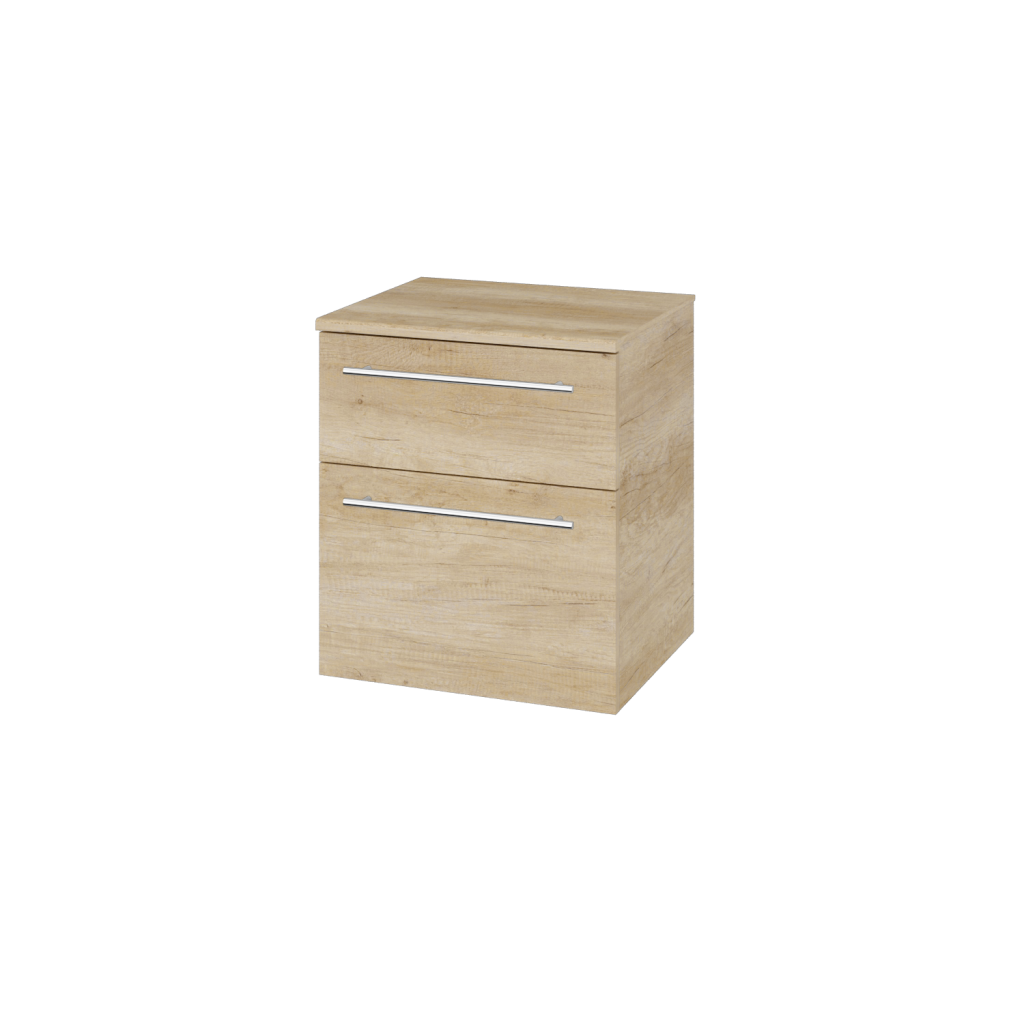 Skromná, ale praktická je naše doplňková skříň DOS SNZ2K 50 v závěsném provedení. Pokud chcete šetřit místem v koupelně, je toto ideální volba. Parametry skříně Skříň DOS SNDZ2K 50 má 2 zásuvky. Ve spodní zásuvce je koš na prádlo, který lze libovolně vyjmout. Zásuvky jsou uloženy na kování značky Hettich s jemným a tlumeným dovíráním a celoživotní zárukou kvality. Zásuvky lze otevírat pomocí několika typů úchytek:  T01 - matná oblá úchytka T02 - ocelová kulatá úchytka T03 - chromová hranatá úchytka T04 - chromová úchytka s lesklým povrchem T05 - chromová uchytka s lesklým povrchem Povrchové úpravy Skříň vyrábíme v celé řadě dekorů, dřevodekorů a laků v provedení lesk/mat. Samozřejmostí je také úprava v provedení Individual dle vzorníku RAL/NCS. Sladění s ostatními skříněmi ve vaší koupelně nebylo nikdy jednodušší.  Horní plátek je vždy v barvě korpusu. Přednosti skříňky: kování značky Hettich dodáváme s celoživotní zárukou. skříň je konstruována jako závěsná. součástí skříně je vyjímatelný koš na prádlo.
