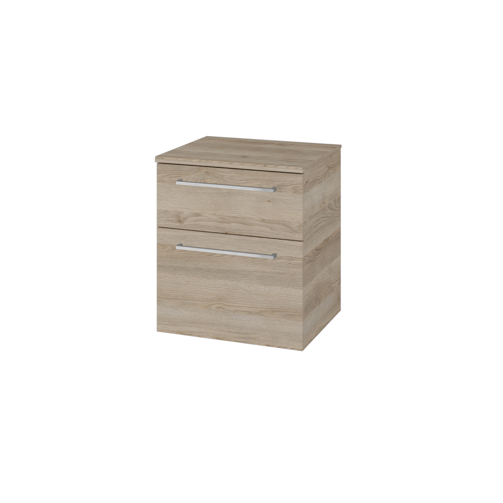 Skromná, ale praktická je naše doplňková skříň DOS SNZ2K 50 v závěsném provedení. Pokud chcete šetřit místem v koupelně, je toto ideální volba. Parametry skříně Skříň DOS SNDZ2K 50 má 2 zásuvky. Ve spodní zásuvce je koš na prádlo, který lze libovolně vyjmout. Zásuvky jsou uloženy na kování značky Hettich s jemným a tlumeným dovíráním a celoživotní zárukou kvality. Zásuvky lze otevírat pomocí několika typů úchytek:  T01 - matná oblá úchytka T02 - ocelová kulatá úchytka T03 - chromová hranatá úchytka T04 - chromová úchytka s lesklým povrchem T05 - chromová uchytka s lesklým povrchem Povrchové úpravy Skříň vyrábíme v celé řadě dekorů, dřevodekorů a laků v provedení lesk/mat. Samozřejmostí je také úprava v provedení Individual dle vzorníku RAL/NCS. Sladění s ostatními skříněmi ve vaší koupelně nebylo nikdy jednodušší.  Horní plátek je vždy v barvě korpusu. Přednosti skříňky: kování značky Hettich dodáváme s celoživotní zárukou. skříň je konstruována jako závěsná. součástí skříně je vyjímatelný koš na prádlo.
