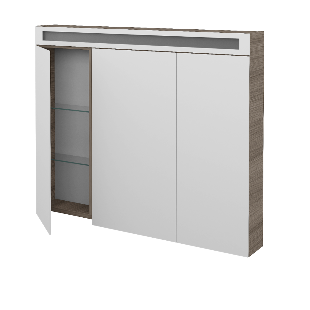 Zrcadlové skříně jsou oblíbené, elegantní a především velmi praktické. V Dřevojasu jsme se při jejich výrobě zaměřili na to, aby vám v zpříjemnily osobní hygienu a celkově zjednodušily život v koupelně. A přesně toto umí galerky řady AIR. Parametry galerky Zrcadlová skříňka AIR GA3OE 100 je vyrobena ve trojdveřovém provedení s oboustrannými zrcadly. Ta jsou ke korpusu připevněna pomocí značkových pantů Grass, které jsou k zrcadlům přichyceny pomocí speciální, patentem chráněné a v Dřevojasu zkonstruované, kovové lišty. Vnitřek galerky Vnitřní uspořádání galerky AIR je řešeno šesti poličkami vyrobenými z pevného skla. Tyto poličky lze umístit v šesti různých výškově nastavitelných pozicích. LED osvětlení LED osvětlení o výkonu 19,5 W je umístěno v horní části galerky, za zrcadlovou lištou s propískovaným sklem. Světlo se ovládá vypínačem ve spodní části vnitřku galerky, kde je také k dispozici externí i elektrická zásuvka (230 V). Galerka splňuje krytí IP 44. Povrchové úpravy Zrcadlovou skříňku AIR GA3OE 100 lze vyrobit v celé řadě povrchových úprav. Vybrat si můžete z mnoha dekorů, dřevodekorů laků (provedení lesk/mat) nebo možnost Individual dle vzorníku RAL/NCS. Přednosti galerky: Na galerku se vztahuje naše prodloužená záruka 5 let. Díky svému minimalistickému designu se galerka hodí k jakékoliv umyvadlové skříňce. Materiál korpusu je vyroben z kvalitních LTD desek. Galerka je vybavena úsporným LED osvětlením s výkonem 19,5 W. Oboustranné zrcadlo usazeno na značkových pantech. Dvířka jsou vybavena zrcadlovou lištou chráněnou patentem.