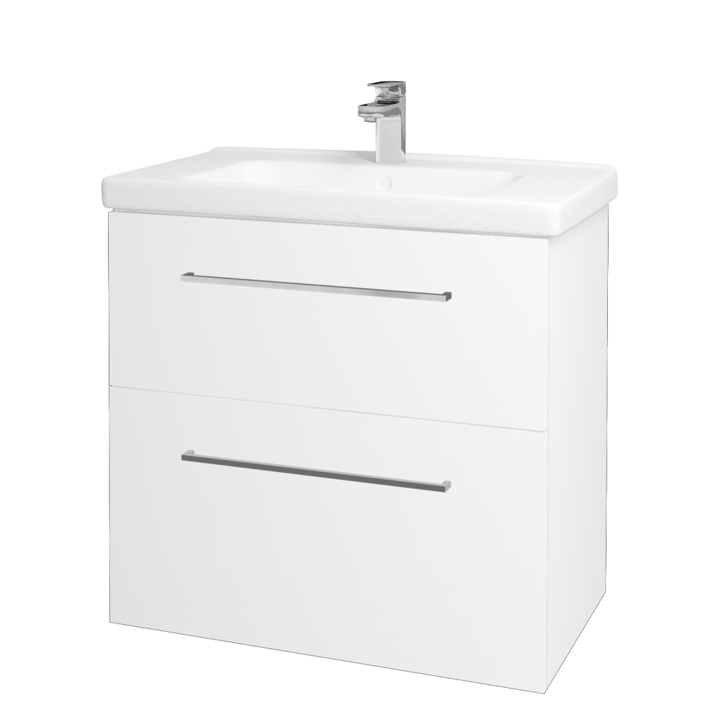 Závěsná koupelnová skříňka BIG INN SZZ2 80 je součástí rozmanité kolekce BIG INN, vyznačující se objemnými zásuvkami, do kterých bez problémů uložite i velké předměty, jako jsou prášky na praní, ručník, osušky a jiné předměty denní hygieny. Vhodné do středně velkých rodinných koupelen. Parametry Umyvadlová skříňka BIG INN SZZ2 80 je konstruována jako závěsná, bez možnosti přidání nožiček. Skříňka disponuje dvěma velkými zásuvkami, které jsou uloženy na značkovém kování Hettich. Speciální systém výsuvů zajišťuje tlumené dovírání zásuvek a při jejich neopatrném nebo rychlém dovření zabrání jakémukoliv nárazu o korpus skříňky. Na kování Hettich dáváme celoživotní záruku. U koupelnových skříněk BIG INN si lze vybrat z pěti druhů elegantních úchytek: T01 - mat T02 - ocel T03 - chrom T04 - chrom T06 - černá mat Pořádek v zásuvkách Pro lepší přehled v zásuvkách si můžete do horní zásuvky zakoupit náš dřevěný pořadač a do spodní zásuvky kovový organizér. Kvalitní keramické umyvadlo Součástí ceny této koupelnové skříňky je kvalitní keramické umyvadlo Harmonia 80 s hranatým tvarem a pochromovaným odtokem. Vanička umyvadla má v přední části praktické zešikmení. Horní plocha umyvadla je rovná a může sloužit pro odkládání různých předmětů. Barevné provedení Korpus i čelní plocha skříňky jsou vyrobeny z kvalitních LTD desek, které lze upravit v celé řadě dekorů, dřevodekorů (např. oblíbené dekory Arlington, Nebraska atd.) a laků v provedení lesk/mat. K dispozici je také úprava Individual. Mohlo by vás zajímat: Koupelnovou skříňku BIG INN SZZ2 80 dodáváme pouze v závěsném provedení bez možnosti instalace nožiček. Na tuto koupelnovou řadu se vztahuje prodloužená záruka 5 let. Na kování Hettich dáváme doživotní záruku kvality. Velký výběr barevných provedení a úchytek. Objemné zásuvky.