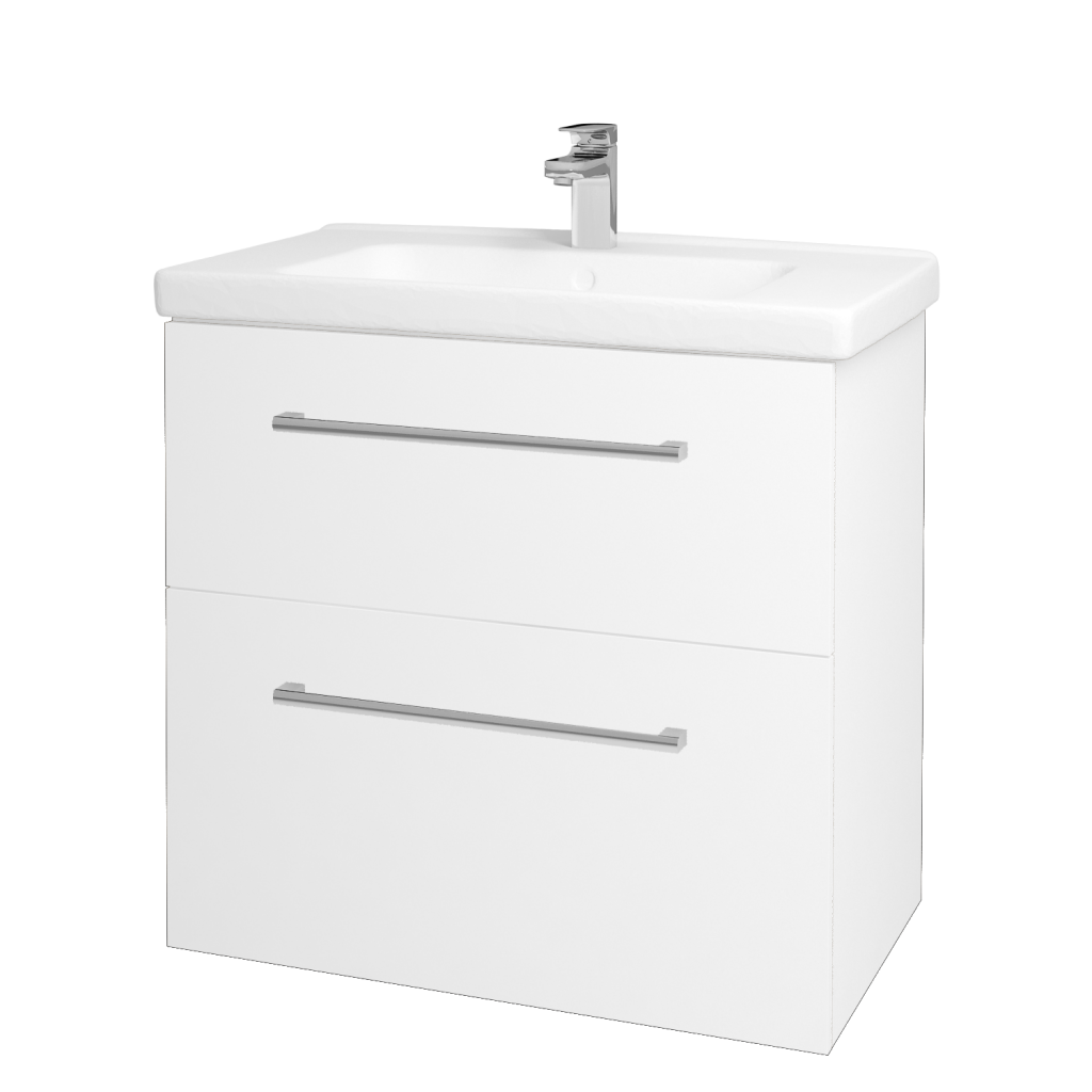 Závěsná koupelnová skříňka BIG INN SZZ2 80 je součástí rozmanité kolekce BIG INN, vyznačující se objemnými zásuvkami, do kterých bez problémů uložite i velké předměty, jako jsou prášky na praní, ručník, osušky a jiné předměty denní hygieny. Vhodné do středně velkých rodinných koupelen. Parametry Umyvadlová skříňka BIG INN SZZ2 80 je konstruována jako závěsná, bez možnosti přidání nožiček. Skříňka disponuje dvěma velkými zásuvkami, které jsou uloženy na značkovém kování Hettich. Speciální systém výsuvů zajišťuje tlumené dovírání zásuvek a při jejich neopatrném nebo rychlém dovření zabrání jakémukoliv nárazu o korpus skříňky. Na kování Hettich dáváme celoživotní záruku. U koupelnových skříněk BIG INN si lze vybrat z pěti druhů elegantních úchytek: T01 - mat T02 - ocel T03 - chrom T04 - chrom T06 - černá mat Pořádek v zásuvkách Pro lepší přehled v zásuvkách si můžete do horní zásuvky zakoupit náš dřevěný pořadač a do spodní zásuvky kovový organizér. Kvalitní keramické umyvadlo Součástí ceny této koupelnové skříňky je kvalitní keramické umyvadlo Harmonia 80 s hranatým tvarem a pochromovaným odtokem. Vanička umyvadla má v přední části praktické zešikmení. Horní plocha umyvadla je rovná a může sloužit pro odkládání různých předmětů. Barevné provedení Korpus i čelní plocha skříňky jsou vyrobeny z kvalitních LTD desek, které lze upravit v celé řadě dekorů, dřevodekorů (např. oblíbené dekory Arlington, Nebraska atd.) a laků v provedení lesk/mat. K dispozici je také úprava Individual. Mohlo by vás zajímat: Koupelnovou skříňku BIG INN SZZ2 80 dodáváme pouze v závěsném provedení bez možnosti instalace nožiček. Na tuto koupelnovou řadu se vztahuje prodloužená záruka 5 let. Na kování Hettich dáváme doživotní záruku kvality. Velký výběr barevných provedení a úchytek. Objemné zásuvky.