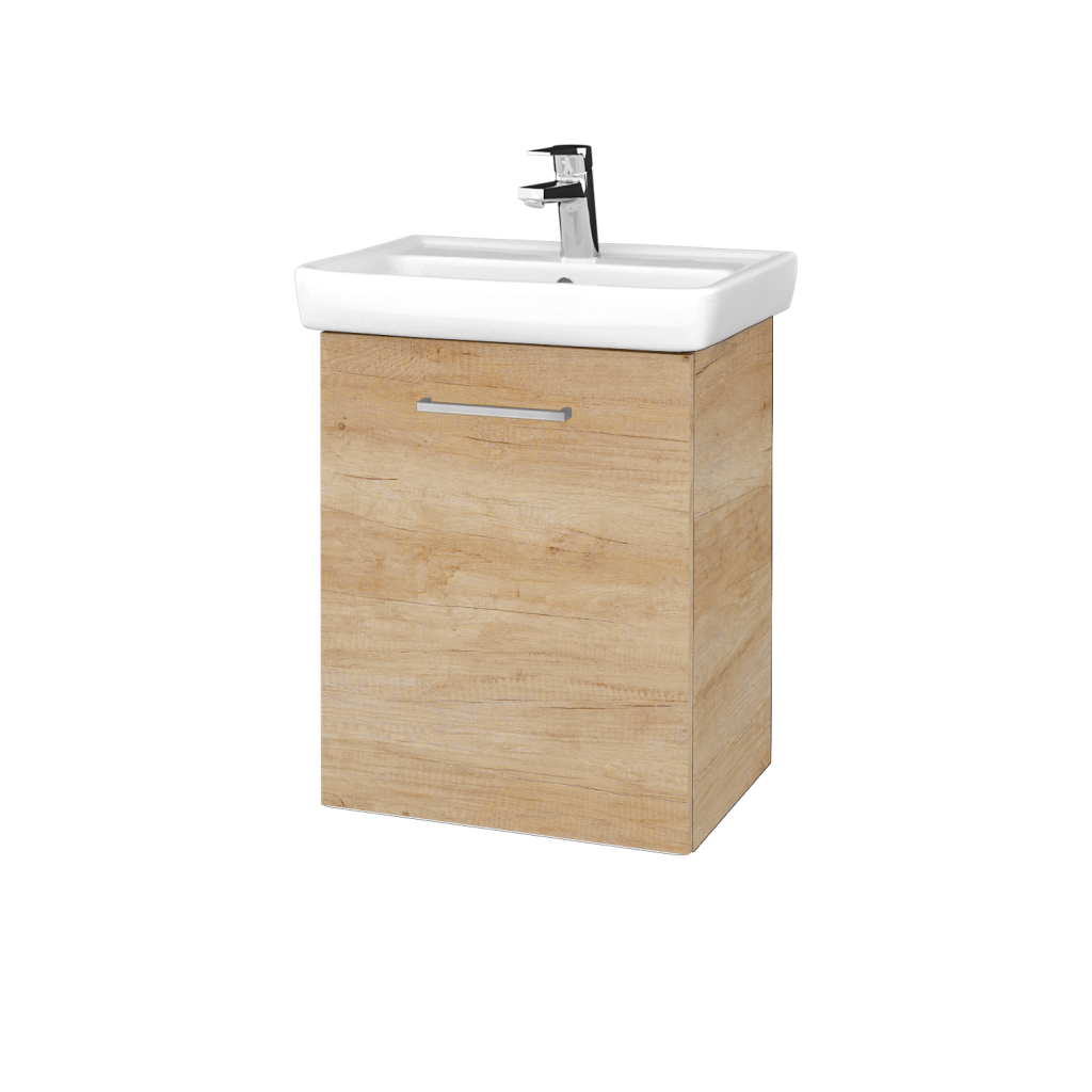Závěsná koupelnová skříňka DOOR SZD 50 je součástí speciální kolekce DOOR, která je určena pro malé, případně panelákové koupelny. Parametry skříňky Umyvadlová skříňka DOOR SZD 50 je vyrobena ve dveřovém provedení, přičemž si můžete vybrat, zda chcete levé nebo pravé otevírání. Dvířka skříňky se otevírají pomocí úchytky a jsou zavěšena na značkovém kování Hettich, na které dáváme doživotní záruku kvality. Celkem můžete vybírat z šesti typů: T01 - mat T02 - ocel T03 - chrom T04 - chrom T39 - chrom T06 - černá mat Vnitřní prostor skříňky je dělen dřevěnou poličkou. Umyvadlo Součástí skříňky je keramické umyvadlo Mini 50 s hranatým tvarem a zaoblenými rohy. Uvnitř umyvadla je pozvolný spád, díky čemuž se v něm nebude držet voda. V zadní části umyvadla se nachází menší odkládací plocha. Povchrové úpravy Skříňku DOOR SZD 50 si můžete nechat vyrobit v celé řadě dekorů, dřevodekorů, laků nebo v individuálním provedení dle RAL/NCS. Podle výběru povrchového zpracování se také odvíjí tvar hran dvířek. Zatímco u dekorů (cenová skupina CSI) mají dvířka ostré hrany, tak u laků a provedení Individual jsou hrany oblé. Přednosti skříňky Skříňka je díky svým rozměrům vhodná do menších koupelen nebo na toaletu. U dvířek je k dispozici volba levého či pravého otevírání. Dvířka skříňky jsou usazena na kování značky Hettich s doživotní zárukou kvality. Ke skříňce je možné přimontovat nožičky. Koupelnoou skříňku lze kombinovat například s galerkou Q GA 50, nebo MAX GAO 50 s LED osvětlením a oboustranným zrcadlem a vysokou závěsnou skříní DOOR SV1D2 35.