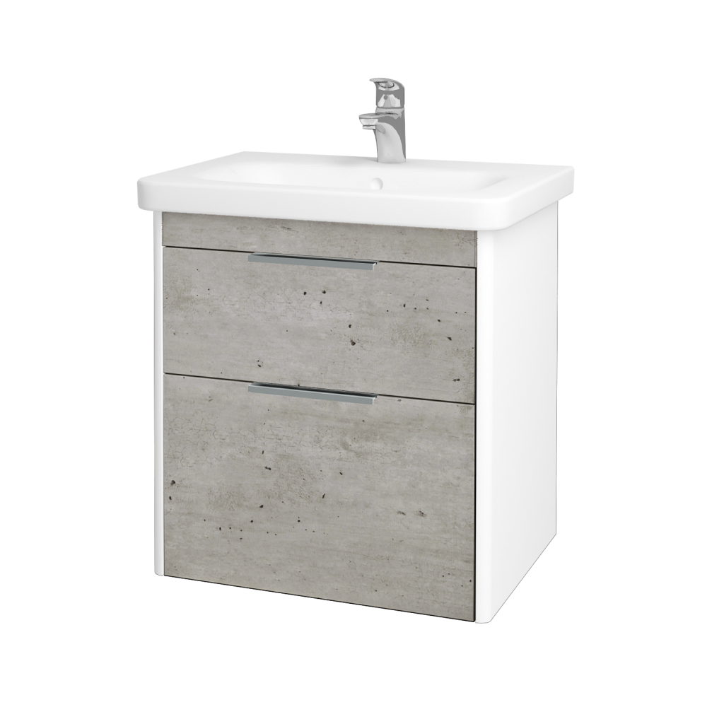 Dřevojas - Umyvadlová skříňka ENZO SZZ2 65 - L01 Bílá vysoký lesk / D01 Beton 186890
