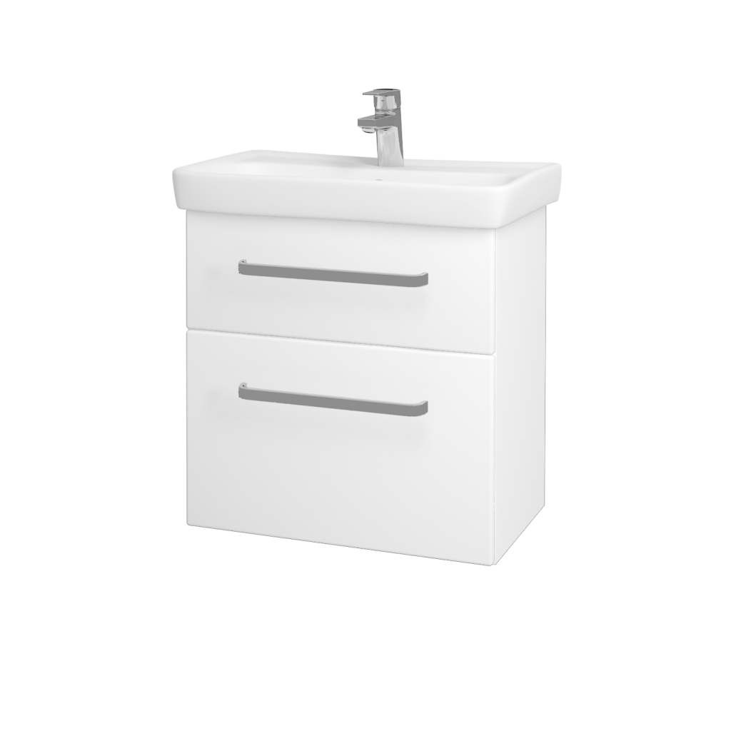 Závěsná koupelnová skříň GO SZZ2 60 s umyvadlem Mini 60 (součástí ceny) a dvěma zásuvkami je součástí praktické kolekce GO, jejíž přednosti ocení zejména majitelé menších či středních koupelen. Parametry skříně Skříň GO SZZ2 60 je řešena jako dvouzásuvková. Horní šuplík je tvarové přizpůsoben sifonu a je vhodný zejména pro drobnější předměty. Naopak do spodní zásuvky bez problému uložíte i předměty jako prací prášek, ručníky apod. Obě zásuvky jsou uloženy na značkových výsuvech Hettich s doživotní zárukou kvality a otevírají se pomocí úchytky. Na výběr máte hned z pěti elegantních úchytek: T01 - mat T02 - ocel T03 - chrom T04 - chrom T06 - černá mat Umyvadlo Součástí ceny skříně je i krásné keramické umyvadlo Mini 60.  Povrchové úpravy Skříňku vyrábíme v celé škále povrchových úprav. Vybírat můžete z krásných dekorů, elegantních dřevodekorů nebo laků (lesk/mat) či provedení Individual dle vzorníku RAL/NCS. Přednosti skříně: Skříň je velice elegantní a ikdyž se zdá být malá, je velmi prostorná. Skříňka je závěsná, avšak je možné k ní doobjednat nožičky o výšce 20 cm. Nad skříňku GO SZZ2 60 lze umístit například koupelnovou galerku MAX GAO 50 se zrcadlem a zabudovaným LED osvětlením.