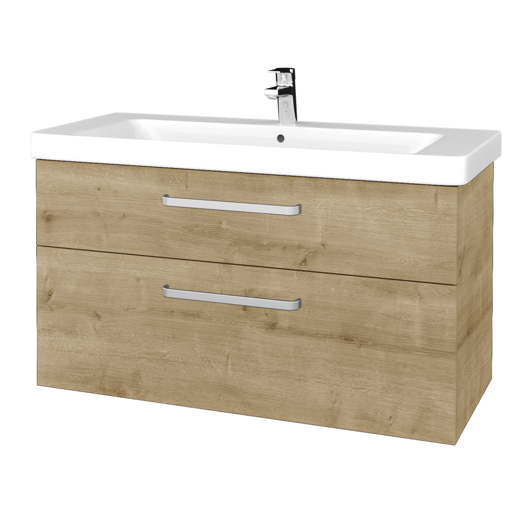 Koupelnová skříňka Q MAX SZZ2 105 je součástí oblíbené kolekce Q MAX, vyznačující se krásným a jednoduchým designem, kombinovaným s vysokou kvalitou zpracování. V současnosti je kolekce díky těmto přednostem nejprodávanější řadou koupelnového nábytku v České republice. Elegance do každé koupelny Umyvadlová skříňka Q MAX SZZ2 105 díky svým rozměrům vhodná do větších koupelen. Především ti náročnější nebo rodiny s dětmi jistě ocení dvě prostorné zásuvky, které jsou uložené na kvalitních výsuvech značky Hettich s jemným dovíráním. Na kování dáváme celoživotní záruku. Zásuvky se otevírají pomocí kovové úchytky. Vybírat můžete z pěti typů: T01 - matná oblá úchytka z hliníku T02 - ocelová kulatá úchytka T03 - chromová hranatá úchytka T04 - chromová lesklá úchytka T06 - černá mat Dekory a barevná provedení Skříňku vyrábíme v celé řadě krásných dekorů, dřevodekorů (Arlington, Borovice Jackson nebo Colorado atd.) a laků v lesklém nebo matném provedení. K dispozici je také výroba v provedení Individual dle vzorníku RAL/NCS. Umyvadlo Součástí ceny je elegantní keramické umyvadlo Victory 105 s odkládací plochou po stranách. Mohlo by vás zajímat Za kvalitou si stojíme, a proto dáváme na skříňku a umyvadlo prodlouženou záruku 5 let. V prostoru umyvadla, kolem baterie, je odkládací plocha Do spodní zásuvky lze vložit organizér Hettich s nastavitelnými přepážkami (organizér není v ceně této skříně). Skříňka je standardně dodávána v závěsném provedení, lze k ní však přiobjednat také nožičky (o výšce 20 cm). Skříňku lze zkombinovat s galerkou Q GA2 100 (zrcadlo se skříní) nebo Sani GA2O 100 se zabudovaným LED osvětlením. Ke koupelnové skříňce Q MAX si můžete objednat také některou z našich doplňkových skříní.