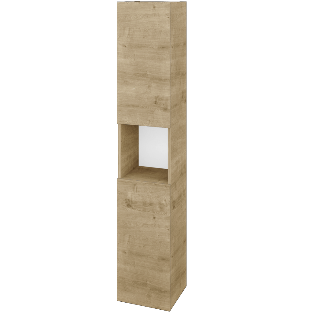 Problém s úložným prostorem ve vašich koupelnách hravě vyřeší nová skříň DOS SVD2O 35, u které oceníte kromě dvou oddělených prostorů i menší odkládací niku. Skříň je velmi praktická a vhodná do jakékoliv koupelny. Parametry skříně Skříň DOS SVD2O 35 je konstruována jako závěsná ve dvoudveřovém provedení. Prostor je rozdělen na horní a spodní část s praktickou nikou uprostřed. V obou částech skříně se nachází 4 skleněné nastavitelné police, do spodní části si můžete navíc doobjednat i koš na prádlo.  Dveře jsou zavěšeny na kování značky Hettich s jemným a tichým dovíráním a v obou případech (horní i dolní) části máte možnost výběru levého nebo pravého otevírání. Dvířka lze otevírat pomocí několika typů úchytek:  T01 - matná oblá úchytka T02 - ocelová kulatá úchytka T03 - chromová hranatá úchytka T04 - chromová úchytka s lesklým povrchem T05 - chromová uchytka s lesklým povrchem možnost bezúchytkového provedení T31- Push to Open (nelze v případě instalace kšoe na prádlo). Povrchové úpravy Skříň vyrábíme v celé řadě dekorů, dřevodekorů a laků v provedení lesk/mat. Samozřejmostí je také úprava v provedení Individual dle vzorníku RAL/NCS. Sladění s ostatními skříněmi ve vaší koupelně nebylo nikdy jednodušší.  Přednosti skříňky: kování značky Hettich dodáváme s celoživotní zárukou. ve spodní části je praktický a objemný prádelní koš. součástí skříně je i užitečná nika pro odkládání drobných předmětů.
