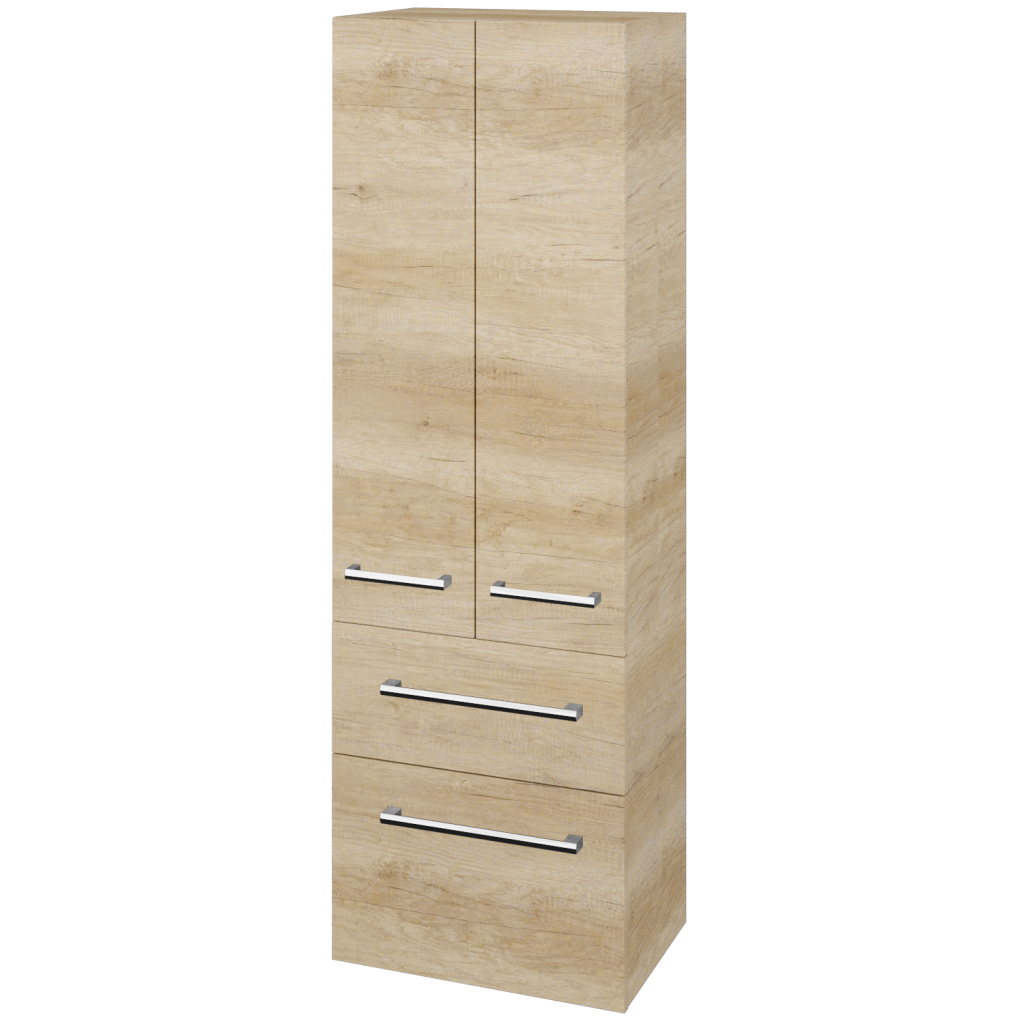 Velký úložný prostor nabízí doplňková skříň DOS SVD2Z2 50, která je díky svému řešení velmi praktická, univerzální a vhodná do středně nebo větších koupelen. Parametry skříně Doplňková skříň DOS SVD2Z2 50 je konstruována jako závěsná. Horní část je dvoudveřová se 2 skleněnými a nastavitelnými policemi. Pro menší předměty je uzpůsobená spodní dvouzásuvková část. Jak dvířka, tak i zásuvky, jsou uloženy na kování značky Hettich s jemným dovíráním a otevírají se úchytky. Vybírat můžete z pěti typů: T01 - matná oblá úchytka T02 - ocelová kulatá úchytka T03 - chromová hranatá úchytka T04 - chromová úchytka s lesklým povrchem T06 - černá mat Povrchové úpravy Skříň vyrábíme v celé řadě dekorů, dřevodekorů a laků v provedení lesk/mat. Samozřejmostí je také úprava v provedení Individual dle vzorníku RAL/NCS. Sladění s ostatními skříněmi ve vaší koupelně nebylo nikdy jednodušší. Přednosti skříňky: kování značky Hettich dodáváme s celoživotní zárukou. skříň se hodí k jakékoliv kolekci z naší nabídky. velký úložný prostor.