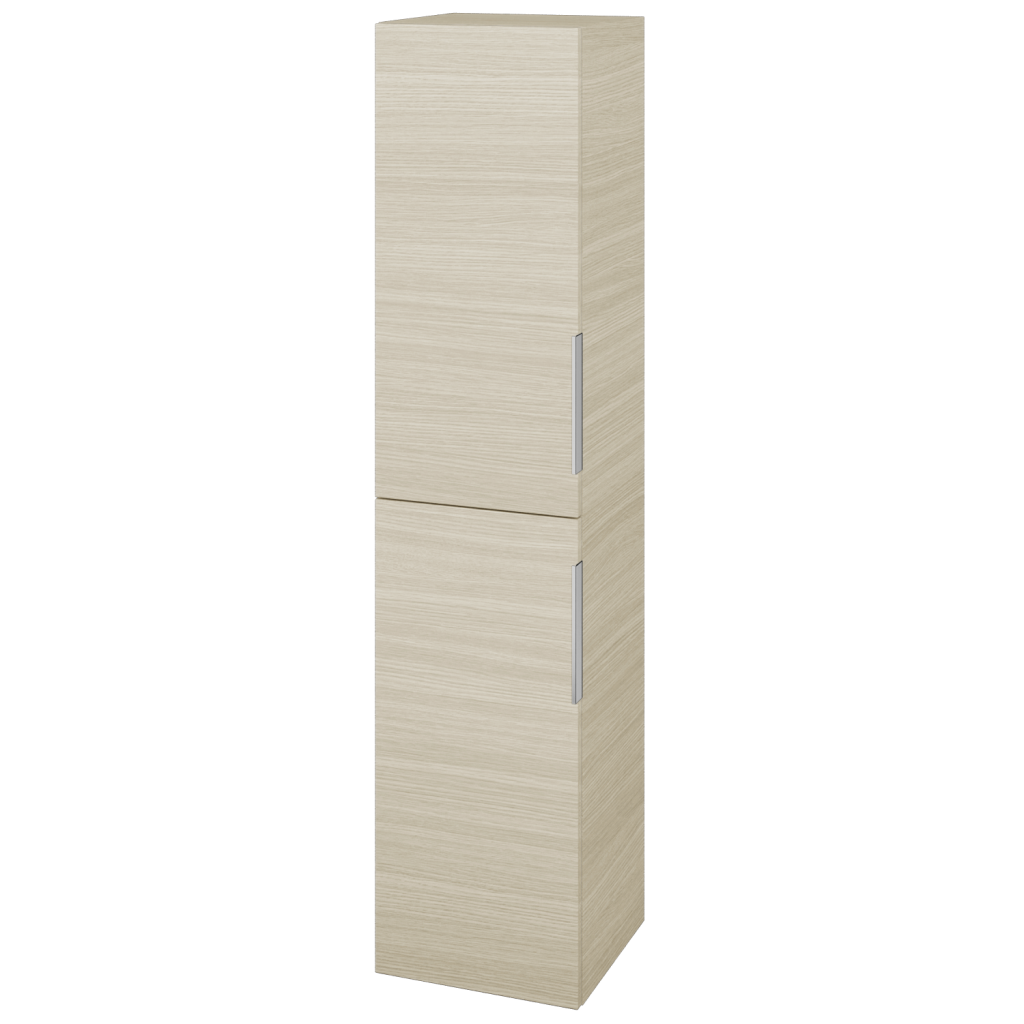 Potřebujete další úložný prostor, ale nemátek dostatek místa v koupelně? Doplňková skříň DOS SVD2K 35 je úzká, takže ušetříte cenné místo, ale současně je prostorná a díky zásuvkám a výklopnému koši na prádlo i velmi praktická. Parametry skříně Skříň DOS SVD2K 35 je konstruována jako závěsná ve dvoudveřovém provedení a s prostorem, rozděleným na horní část se 2 skleněnými a nastavitelnými policemi a na spodní část s výklopným košem na prádlo. Dveře mají kování značky Hettich s jemným a tichým dovíráním a můžete si zvolit, zda chcete levé či pravé otevírání. Dvířka se otevírají pomocí úchytky. Vybírat můžete ze sedmi typů:  T01 - matná oblá úchytka T02 - ocelová kulatá úchytka T03 - chromová hranatá úchytka T04 - chromová úchytka s lesklým povrchem T05 - chromová uchytka s lesklým povrchem T06 - černá mat T07 - černá mat Povrchové úpravy Skříň vyrábíme v celé řadě dekorů, dřevodekorů a laků v provedení lesk/mat. Samozřejmostí je také úprava v provedení Individual dle vzorníku RAL/NCS. Sladění s ostatními skříněmi ve vaší koupelně nebylo nikdy jednodušší.  Přednosti skříňky: Kování značky Hettich dodáváme s celoživotní zárukou. Ve spodní části je praktický a objemný prádelní koš. Tato koupelnová skříň je závěsná, lze k ní přikoupit kovové nožičky.