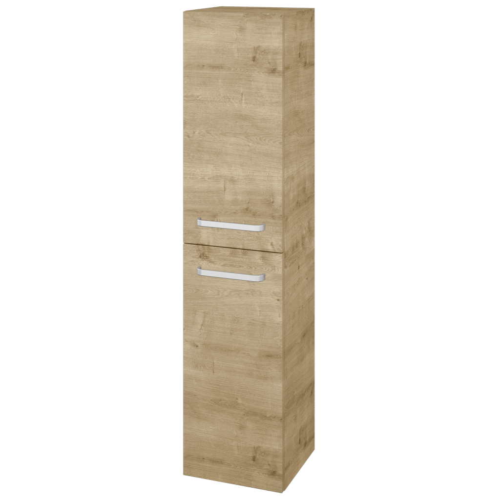 Potřebujete další úložný prostor, ale nemátek dostatek místa v koupelně? Doplňková skříň DOS SVD2K 35 je úzká, takže ušetříte cenné místo, ale současně je prostorná a díky zásuvkám a výklopnému koši na prádlo i velmi praktická. Parametry skříně Skříň DOS SVD2K 35 je konstruována jako závěsná ve dvoudveřovém provedení a s prostorem, rozděleným na horní část se 2 skleněnými a nastavitelnými policemi a na spodní část s výklopným košem na prádlo. Dveře mají kování značky Hettich s jemným a tichým dovíráním a můžete si zvolit, zda chcete levé či pravé otevírání. Dvířka se otevírají pomocí úchytky. Vybírat můžete ze sedmi typů:  T01 - matná oblá úchytka T02 - ocelová kulatá úchytka T03 - chromová hranatá úchytka T04 - chromová úchytka s lesklým povrchem T05 - chromová uchytka s lesklým povrchem T06 - černá mat T07 - černá mat Povrchové úpravy Skříň vyrábíme v celé řadě dekorů, dřevodekorů a laků v provedení lesk/mat. Samozřejmostí je také úprava v provedení Individual dle vzorníku RAL/NCS. Sladění s ostatními skříněmi ve vaší koupelně nebylo nikdy jednodušší.  Přednosti skříňky: Kování značky Hettich dodáváme s celoživotní zárukou. Ve spodní části je praktický a objemný prádelní koš. Tato koupelnová skříň je závěsná, lze k ní přikoupit kovové nožičky.