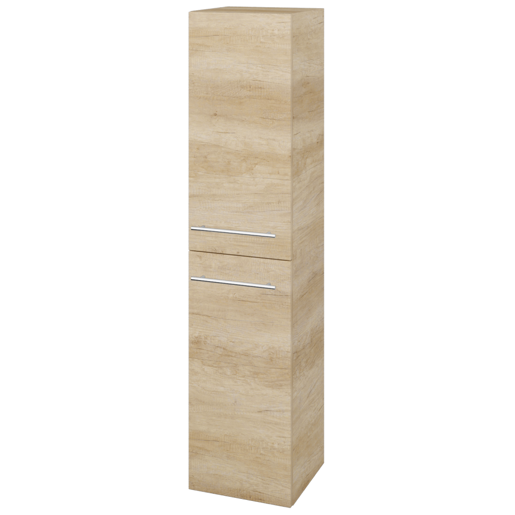 Potřebujete další úložný prostor, ale nemátek dostatek místa v koupelně? Doplňková skříň DOS SVD2K 35 je úzká, takže ušetříte cenné místo, ale současně je prostorná a díky zásuvkám a výklopnému koši na prádlo i velmi praktická. Parametry skříně Skříň DOS SVD2K 35 je konstruována jako závěsná ve dvoudveřovém provedení a s prostorem, rozděleným na horní část se 2 skleněnými a nastavitelnými policemi a na spodní část s výklopným košem na prádlo. Dveře mají kování značky Hettich s jemným a tichým dovíráním a můžete si zvolit, zda chcete levé či pravé otevírání. Dvířka se otevírají pomocí úchytky. Vybírat můžete ze sedmi typů: T01 - matná oblá úchytka T02 - ocelová kulatá úchytka T03 - chromová hranatá úchytka T04 - chromová úchytka s lesklým povrchem T05 - chromová uchytka s lesklým povrchem T06 - černá mat T07 - černá mat Povrchové úpravy Skříň vyrábíme v celé řadě dekorů, dřevodekorů a laků v provedení lesk/mat. Samozřejmostí je také úprava v provedení Individual dle vzorníku RAL/NCS. Sladění s ostatními skříněmi ve vaší koupelně nebylo nikdy jednodušší. Přednosti skříňky: Kování značky Hettich dodáváme s celoživotní zárukou. Ve spodní části je praktický a objemný prádelní koš. Tato koupelnová skříň je závěsná, lze k ní přikoupit kovové nožičky.