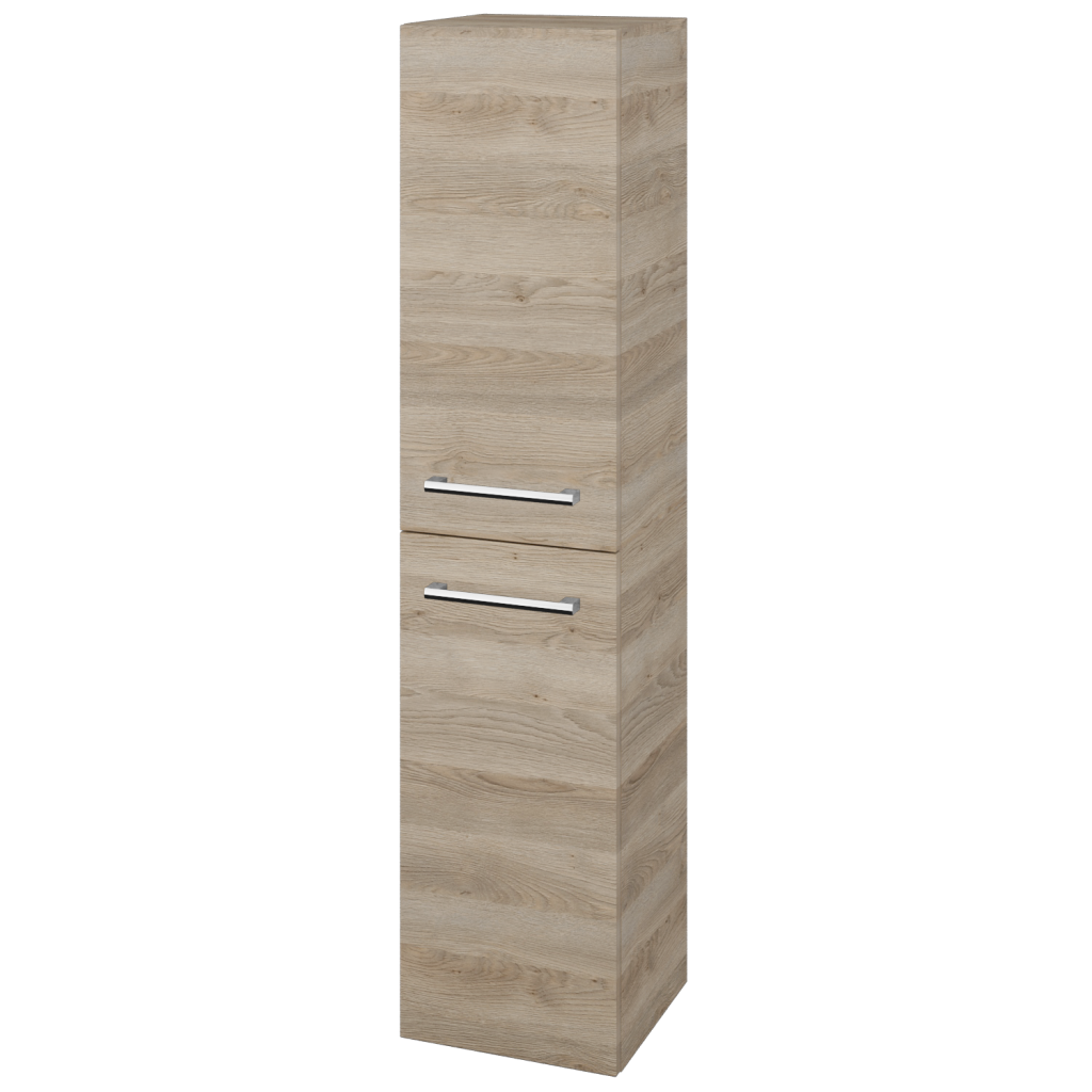 Potřebujete další úložný prostor, ale nemátek dostatek místa v koupelně? Doplňková skříň DOS SVD2K 35 je úzká, takže ušetříte cenné místo, ale současně je prostorná a díky zásuvkám a výklopnému koši na prádlo i velmi praktická. Parametry skříně Skříň DOS SVD2K 35 je konstruována jako závěsná ve dvoudveřovém provedení a s prostorem, rozděleným na horní část se 2 skleněnými a nastavitelnými policemi a na spodní část s výklopným košem na prádlo. Dveře mají kování značky Hettich s jemným a tichým dovíráním a můžete si zvolit, zda chcete levé či pravé otevírání. Dvířka se otevírají pomocí úchytky. Vybírat můžete ze sedmi typů:  T01 - matná oblá úchytka T02 - ocelová kulatá úchytka T03 - chromová hranatá úchytka T04 - chromová úchytka s lesklým povrchem T05 - chromová uchytka s lesklým povrchem T06 - černá mat T07 - černá mat Povrchové úpravy Skříň vyrábíme v celé řadě dekorů, dřevodekorů a laků v provedení lesk/mat. Samozřejmostí je také úprava v provedení Individual dle vzorníku RAL/NCS. Sladění s ostatními skříněmi ve vaší koupelně nebylo nikdy jednodušší.  Přednosti skříňky: Kování značky Hettich dodáváme s celoživotní zárukou. Ve spodní části je praktický a objemný prádelní koš. Tato koupelnová skříň je závěsná, lze k ní přikoupit kovové nožičky.