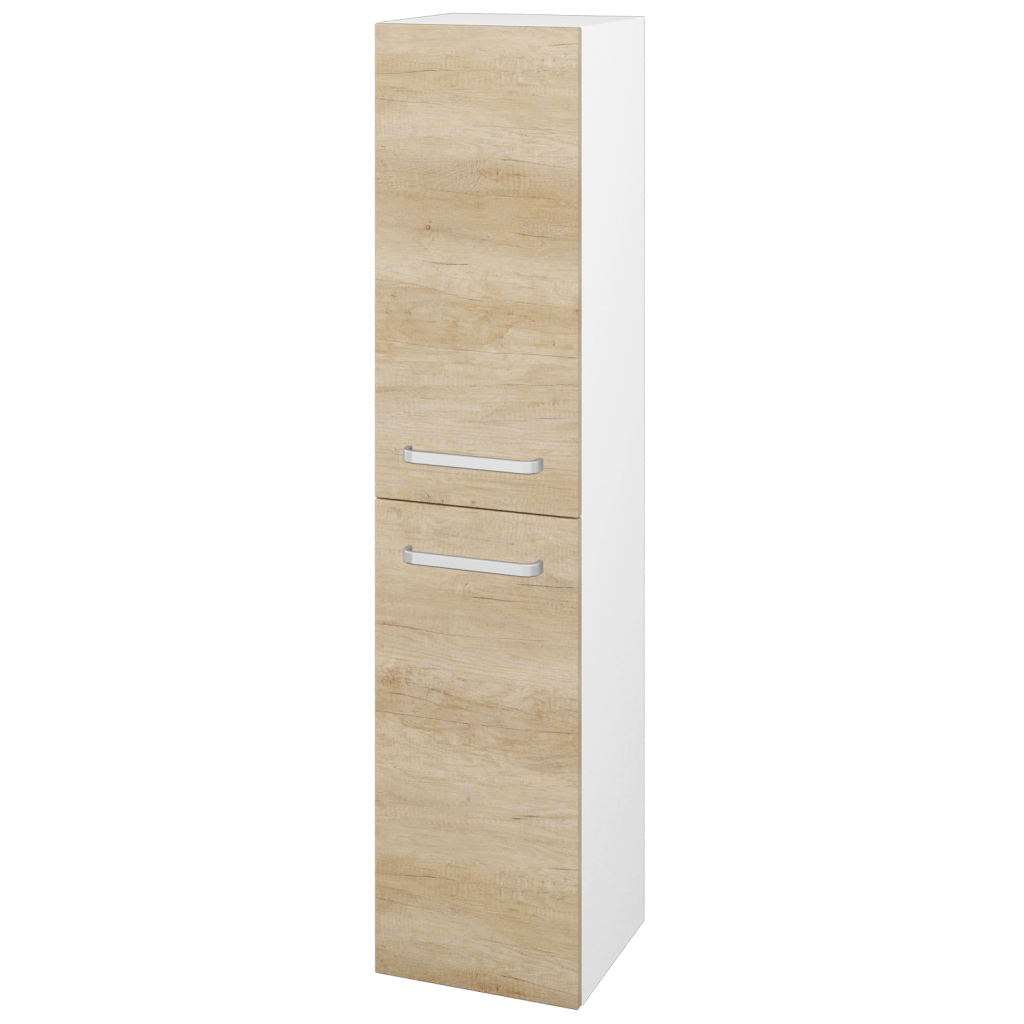 Potřebujete další úložný prostor, ale nemátek dostatek místa v koupelně? Doplňková skříň DOS SVD2K 35 je úzká, takže ušetříte cenné místo, ale současně je prostorná a díky zásuvkám a výklopnému koši na prádlo i velmi praktická. Parametry skříně Skříň DOS SVD2K 35 je konstruována jako závěsná ve dvoudveřovém provedení a s prostorem, rozděleným na horní část se 2 skleněnými a nastavitelnými policemi a na spodní část s výklopným košem na prádlo. Dveře mají kování značky Hettich s jemným a tichým dovíráním a můžete si zvolit, zda chcete levé či pravé otevírání. Dvířka se otevírají pomocí úchytky. Vybírat můžete ze sedmi typů:  T01 - matná oblá úchytka T02 - ocelová kulatá úchytka T03 - chromová hranatá úchytka T04 - chromová úchytka s lesklým povrchem T05 - chromová uchytka s lesklým povrchem T06 - černá mat T07 - černá mat Povrchové úpravy Skříň vyrábíme v celé řadě dekorů, dřevodekorů a laků v provedení lesk/mat. Samozřejmostí je také úprava v provedení Individual dle vzorníku RAL/NCS. Sladění s ostatními skříněmi ve vaší koupelně nebylo nikdy jednodušší.  Přednosti skříňky: Kování značky Hettich dodáváme s celoživotní zárukou. Ve spodní části je praktický a objemný prádelní koš. Tato koupelnová skříň je závěsná, lze k ní přikoupit kovové nožičky.