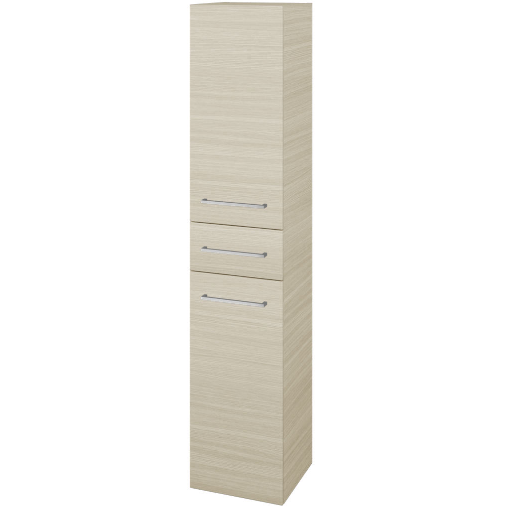 Potřebujete další úložný prostor, ale nemátek dostatek místa v koupelně? Doplňková skříň DOS SVD2ZK 35 je úzká, takže ušetříte cenné místo, ale současně je prostorná a díky zásuvkám a výklopnému koši na prádlo i velmi praktická. Parametry skříně Skříň DOS SVD2ZK 50 je konstruována jako závěsná a jednodveřová se 1 zásuvkou uprostřed. Vnitřní prostor je upravitelný díky dvěma skleněným a nastavitelným policim. Spodní část skříně obsahuje výklopný koš na prádlo. Dveře i zásuvky mají navíc kování značky Hettich s jemným a tichým dovíráním a možnost, zda chcete pravé nebo levé otevírání. Obojí se otevírá pomocí úchytky. Vybírat můžete ze sedmi typů:  T01 - matná oblá úchytka T02 - ocelová kulatá úchytka T03 - chromová hranatá úchytka T04 - chromová úchytka s lesklým povrchem T05 - chromová úchytka T06 - černá mat T07 - černá mat Povrchové úpravy Skříň vyrábíme v celé řadě dekorů, dřevodekorů a laků v provedení lesk/mat. Samozřejmostí je také úprava v provedení Individual dle vzorníku RAL/NCS. Sladění s ostatními skříněmi ve vaší koupelně nebylo nikdy jednodušší. Přednosti skříňky: skříň je velmi prostorná a praktická. kování značky Hettich dodáváme s celoživotní zárukou. součástí skříně je výklopný koš na prádlo.