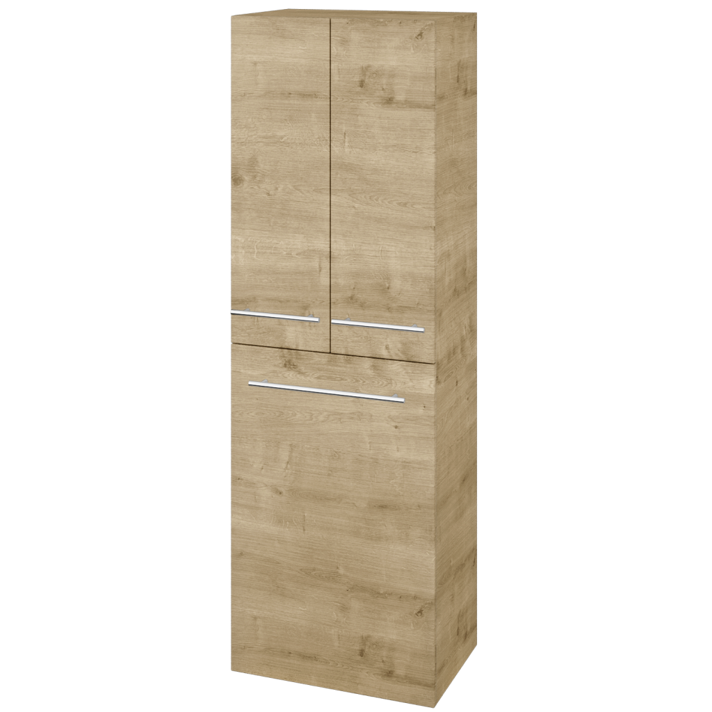 Potřebujete další úložný prostor, ale nemátek dostatek místa v koupelně? Pro tyto účely můžete v naší nabídce najít doplňkovou skříň DOS SV3K 50, která je velmi prostorná a praktická. Parametry skříně Doplňková skříň DOS SVD3K 50 je konstruována jako závěsná v třídveřovém provedení. V horní části se nachází dvojice dvířek s prostorem členěným dvěma skleněnými a nastavitelnými policemi. Ve spodní části jsou výklopná dvířka s prádelním košem. Dveře mají navíc kování značky Hettich s jemným a tichým dovíráním.  Dvířka se otevírají pomocí úchytky. Celkem lze vybírat z pěti typů:  T01 - matná oblá úchytka T02 - ocelová kulatá úchytka T03 - chromová hranatá úchytka T04 - chromová úchytka s lesklým povrchem T06 - černá mat Povrchové úpravy Skříň vyrábíme v celé řadě dekorů, dřevodekorů a laků v provedení lesk/mat. Samozřejmostí je také úprava v provedení Individual dle vzorníku RAL/NCS. Sladění s ostatními skříněmi ve vaší koupelně nebylo nikdy jednodušší. Přednosti skříňky: kování značky Hettich dodáváme s celoživotní zárukou. ve spodní části je  objemný prádelní koš.