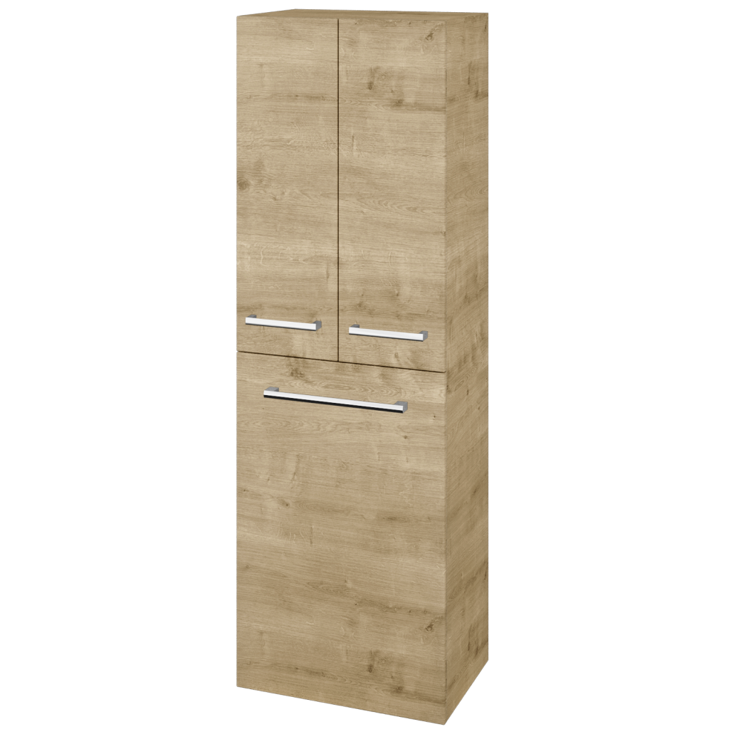 Potřebujete další úložný prostor, ale nemátek dostatek místa v koupelně? Pro tyto účely můžete v naší nabídce najít doplňkovou skříň DOS SV3K 50, která je velmi prostorná a praktická. Parametry skříně Doplňková skříň DOS SVD3K 50 je konstruována jako závěsná v třídveřovém provedení. V horní části se nachází dvojice dvířek s prostorem členěným dvěma skleněnými a nastavitelnými policemi. Ve spodní části jsou výklopná dvířka s prádelním košem. Dveře mají navíc kování značky Hettich s jemným a tichým dovíráním. Dvířka se otevírají pomocí úchytky. Celkem lze vybírat z pěti typů: T01 - matná oblá úchytka T02 - ocelová kulatá úchytka T03 - chromová hranatá úchytka T04 - chromová úchytka s lesklým povrchem T06 - černá mat Povrchové úpravy Skříň vyrábíme v celé řadě dekorů, dřevodekorů a laků v provedení lesk/mat. Samozřejmostí je také úprava v provedení Individual dle vzorníku RAL/NCS. Sladění s ostatními skříněmi ve vaší koupelně nebylo nikdy jednodušší. Přednosti skříňky: kování značky Hettich dodáváme s celoživotní zárukou. ve spodní části je objemný prádelní koš.