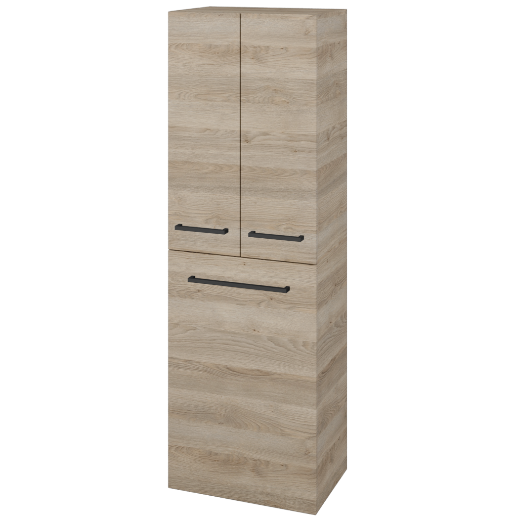 Potřebujete další úložný prostor, ale nemátek dostatek místa v koupelně? Pro tyto účely můžete v naší nabídce najít doplňkovou skříň DOS SV3K 50, která je velmi prostorná a praktická. Parametry skříně Doplňková skříň DOS SVD3K 50 je konstruována jako závěsná v třídveřovém provedení. V horní části se nachází dvojice dvířek s prostorem členěným dvěma skleněnými a nastavitelnými policemi. Ve spodní části jsou výklopná dvířka s prádelním košem. Dveře mají navíc kování značky Hettich s jemným a tichým dovíráním.  Dvířka se otevírají pomocí úchytky. Celkem lze vybírat z pěti typů:  T01 - matná oblá úchytka T02 - ocelová kulatá úchytka T03 - chromová hranatá úchytka T04 - chromová úchytka s lesklým povrchem T06 - černá mat Povrchové úpravy Skříň vyrábíme v celé řadě dekorů, dřevodekorů a laků v provedení lesk/mat. Samozřejmostí je také úprava v provedení Individual dle vzorníku RAL/NCS. Sladění s ostatními skříněmi ve vaší koupelně nebylo nikdy jednodušší. Přednosti skříňky: kování značky Hettich dodáváme s celoživotní zárukou. ve spodní části je  objemný prádelní koš.