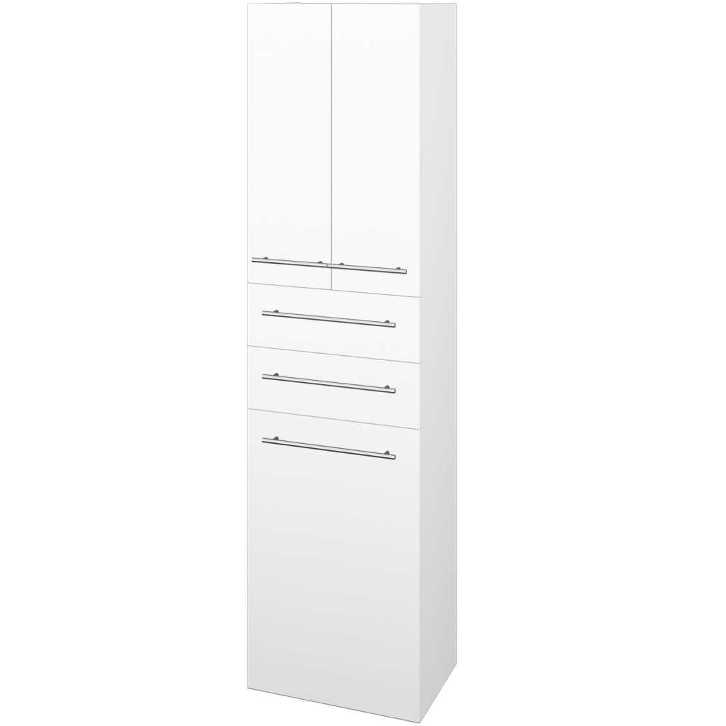 Maximum úložného prostoru nabízí doplňková skříň DOS SVD3Z2K 50, která je díky svému řešení velmi praktická, univerzální a vhodná do středně nebo větších koupelen.  Parametry skříně Skříň DOS SVD3Z2K 50 je konstruována jako závěsná. Díky své výšce - 198,2 cm - vám nabídne opravdu velké množství úložného místa v několika částech. Horní část je dvoudveřová se 2 skleněnými a nastavitelnými policemi. Od spodní části s výklopným košem je oddělena dvojicí praktických zásuvek. Jak dvířka, tak i zásuvky, jsou uloženy na kování značky Hettich s jemným dovíráním a otevírají se pomoci úchytky. Vybírat můžete z pěti typů: T01 - matná oblá úchytka T02 - ocelová kulatá úchytka T03 - chromová hranatá úchytka T04 - chromová úchytka s lesklým povrchem T06 - černá mat Povrchové úpravy Skříň vyrábíme v celé řadě dekorů, dřevodekorů a laků v provedení lesk/mat. Samozřejmostí je také úprava v provedení Individual dle vzorníku RAL/NCS. Sladění s ostatními skříněmi ve vaší koupelně nebylo nikdy jednodušší. Přednosti skříňky: kování značky Hettich dodáváme s celoživotní zárukou. součástí skříně je výklopný koš na prádlo. úložný prostor je díky výšce skříně - 198 mm - opravdu veliký.
